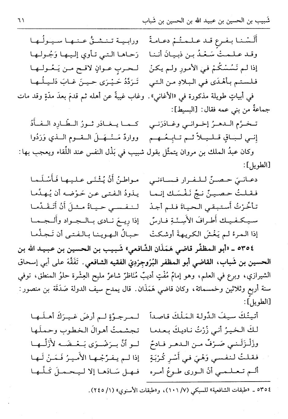شبيب بن الْحسن بن عبيد الله بن الْحُسَيْن بن شباب القَاضِي أَبُو المظفر البروجردي الْفَقِيه الشَّافِعِي تفقه على أبي إِسْحَاق الشِّيرَازِيّ وبرع فِي الْعلم وَهُوَ إِمَام مفت أديب مليح الْعشْرَة حُلْو الْمنطق توفّي سنة أَربع وَثَلَاثِينَ وَخَمْسمِائة وَكَانَ قَاضِي همذان قَالَ يمدح سيف الدولة صَدَقَة بن مَنْصُور