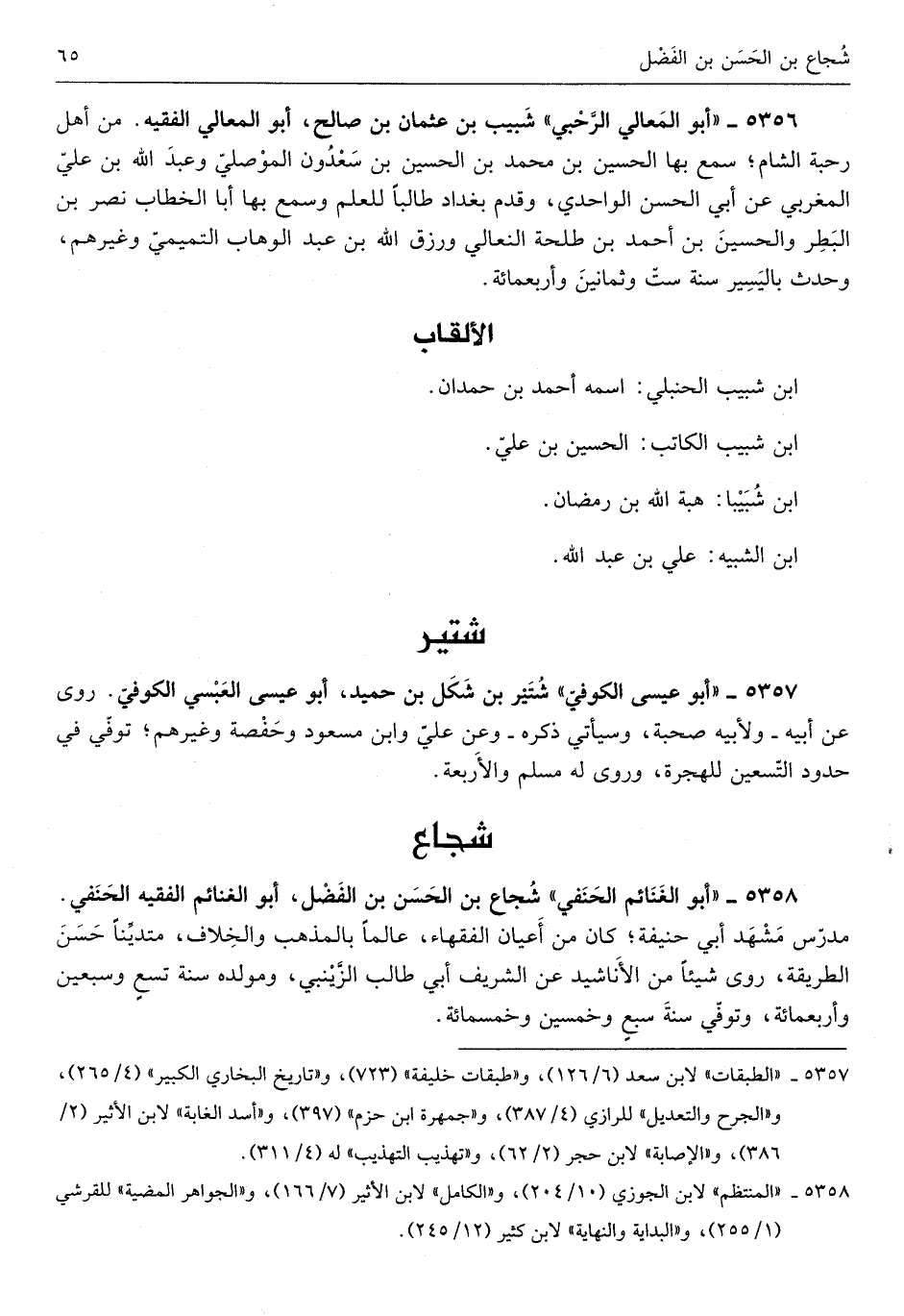 شبيب بن عُثْمَان بن صَالح أَبُو الْمَعَالِي الْفَقِيه من أهل رحبة الشَّام سمع بهَا الْحُسَيْن بن مُحَمَّد بن الْحُسَيْن بن سعدون الْموصِلِي وَعبد الله بن عَليّ المغربي عَن أبي الْحسن الواحدي وَقدم بَغْدَاد طَالبا للْعلم وَسمع بهَا أَبَا الْخطاب نصر بن البطر وَالْحُسَيْن بن أَحْمد بن طَلْحَة النعالني ورزق الله بن عبد الْوَهَّاب التَّمِيمِي وَغَيرهم وَحدث باليسير سنة سِتّ وَثَمَانِينَ وَأَرْبَعمِائَة)