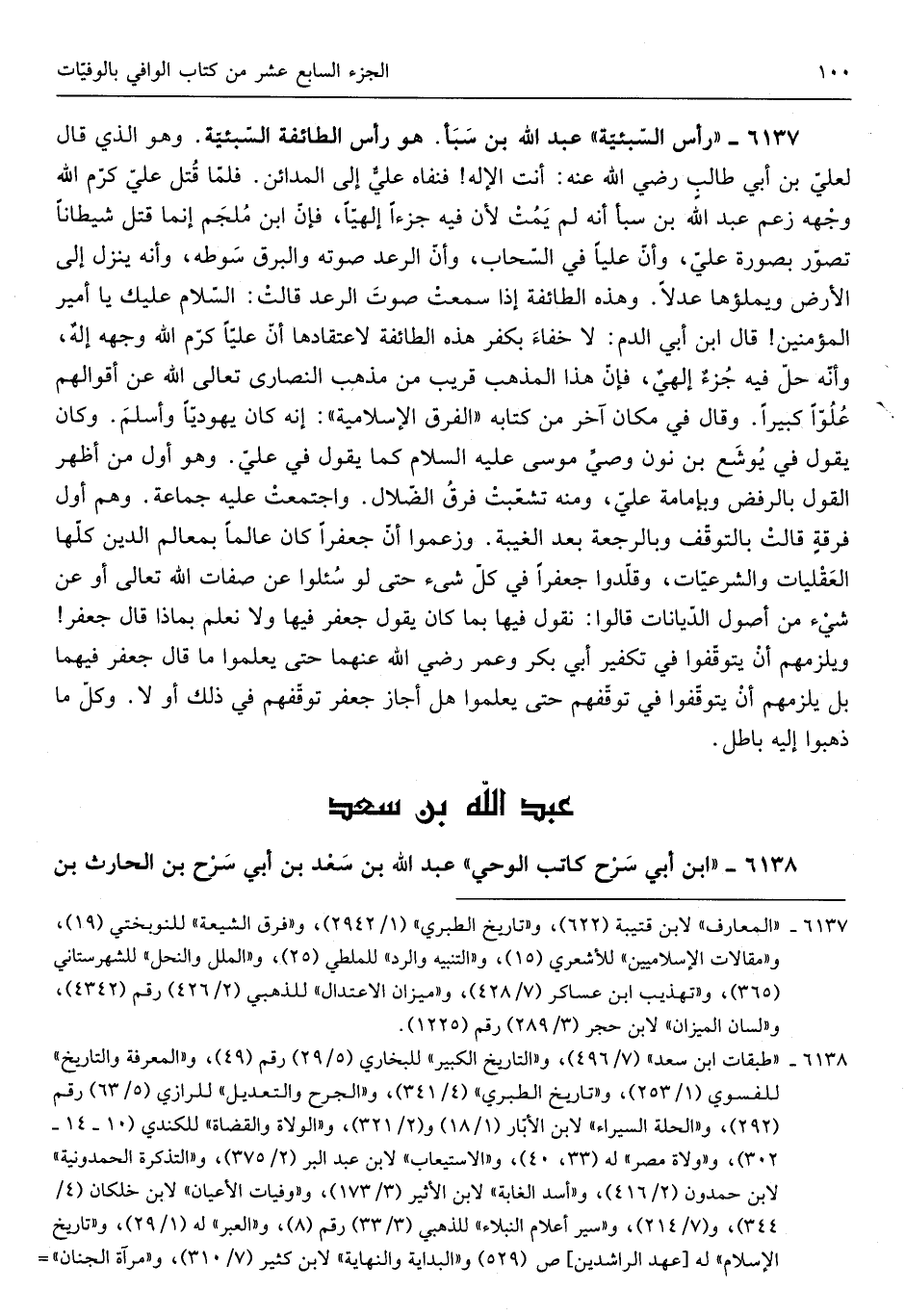 رَأس السبئية عبد الله بن سبأ هُوَ رَأس الطَّائِفَة السبئية وَهُوَ الَّذِي قَالَ لعَلي بن أبي طَالب رَضِي الله عَنهُ)