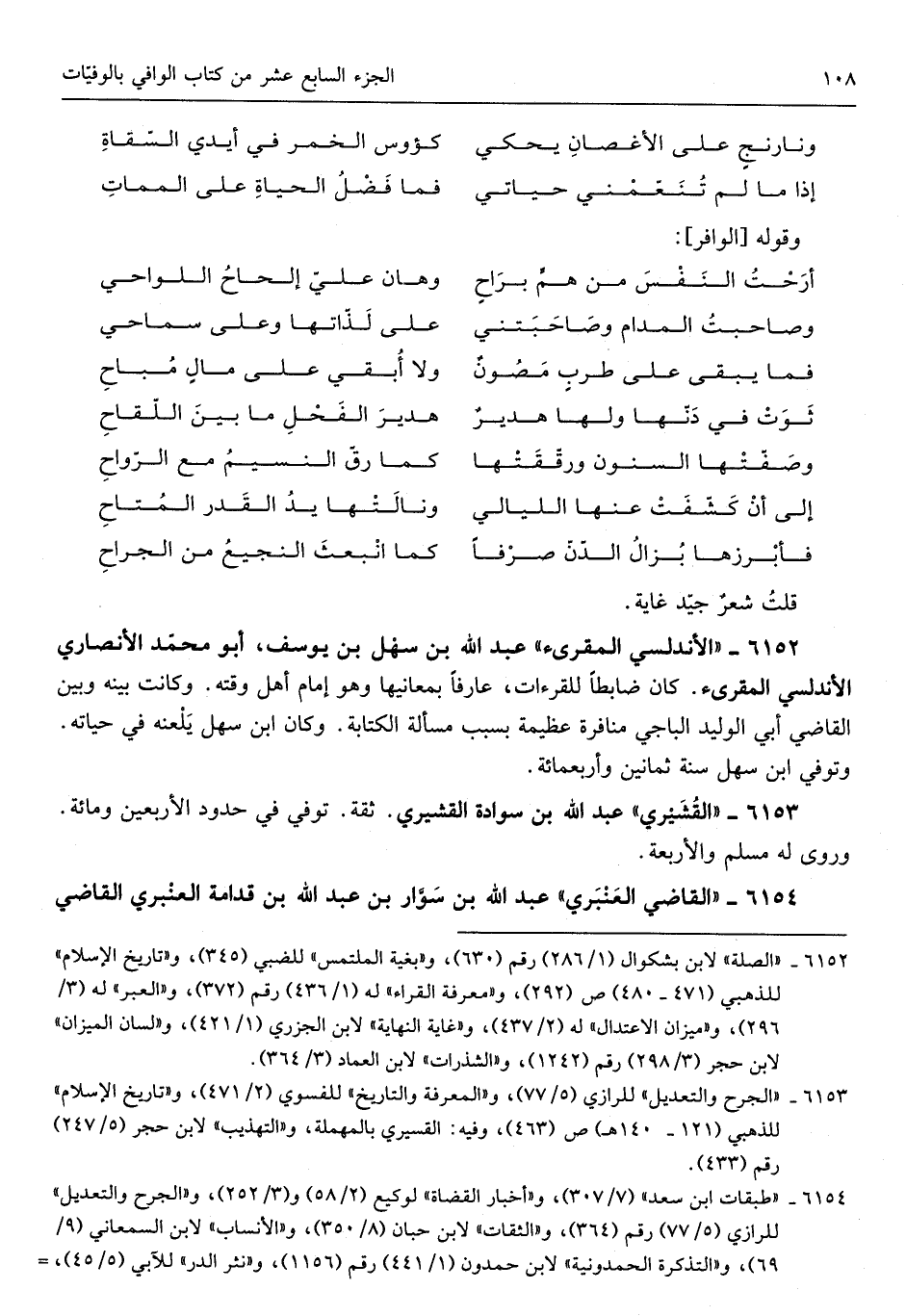 قلت شعرٌ جيد غَايَة الأندلسي المقرىء عبد الله بن سُهَيْل بن يُوسُف أَبُو مُحَمَّد الْأنْصَارِيّ الأندلسي المقرىء كَانَ ضابطاً للقراآت عَارِفًا بمعانيها وَهُوَ إِمَام أهل وقته وَكَانَت بَينه وَبَين القَاضِي أبي الْوَلِيد الْبَاجِيّ منافرة عَظِيمَة بِسَبَب مَسْأَلَة الْكِتَابَة وَكَانَ ابْن سهل يلعنه فِي حَيَاته وَتُوفِّي ابْن سهل سنة ثَمَانِينَ وَأَرْبَعمِائَة