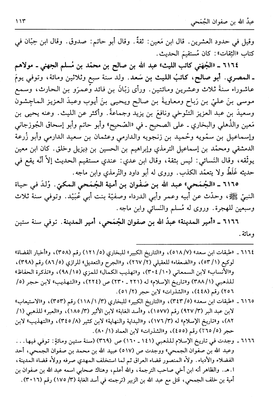 الجُمَحِي عبد الله بن صَفْوَان بن أُميَّة الجُمَحِي الْمَكِّيّ ولد فِي حَيَاة النَّبِي صلى الله عَلَيْهِ وَسلم وَحدث عَن أَبِيه وَعمر وَأبي الدَّرْدَاء وَصفِيَّة بنت أبي عبيد وَتُوفِّي سنة ثلاثٍ وَسبعين لِلْهِجْرَةِ وروى لَهُ مُسلم وَالنَّسَائِيّ وَابْن ماجة)