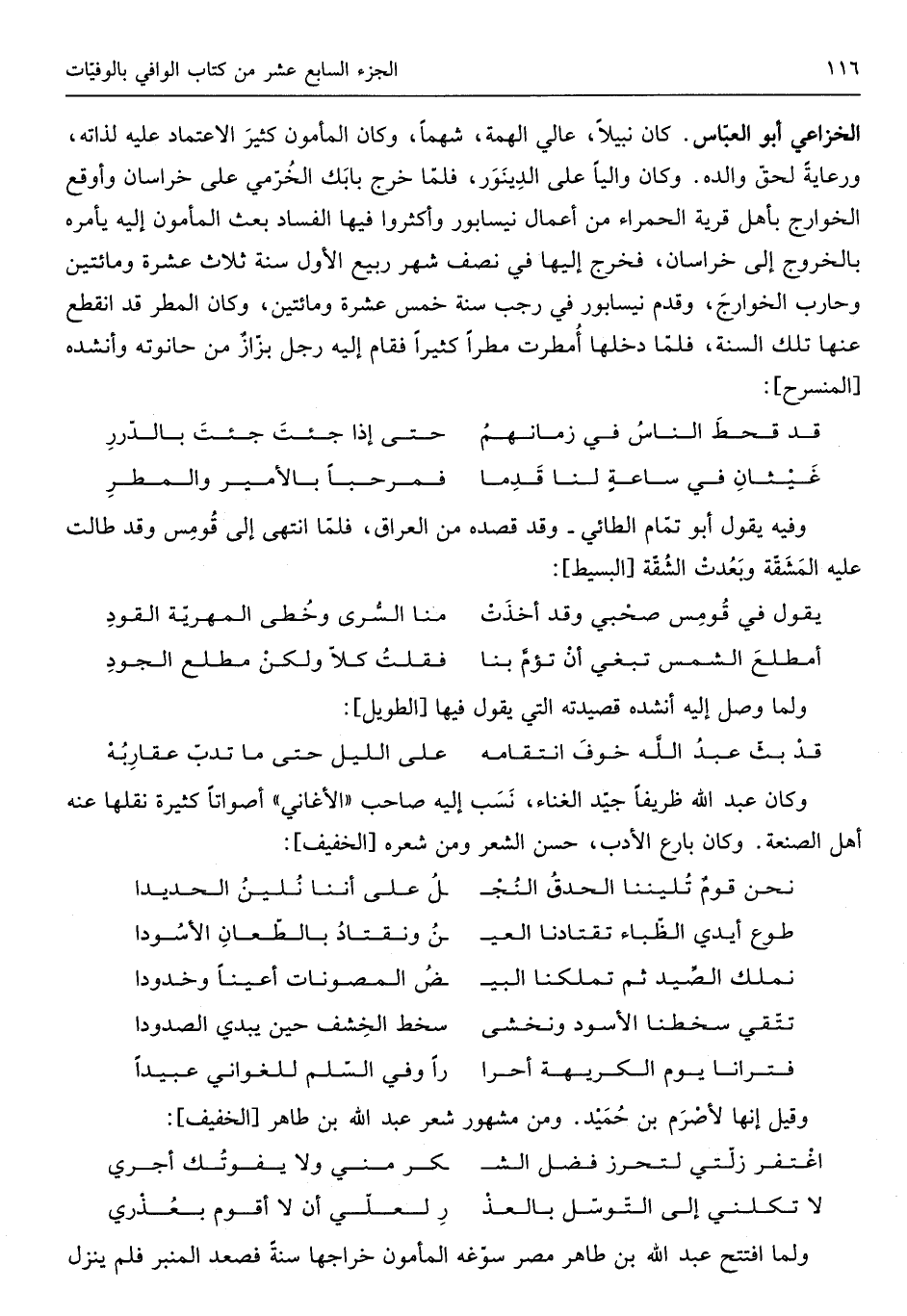 وَفِيه يَقُول أَبُو تَمام الطَّائِي وَقد قَصده من الْعرَاق فَلَمَّا انْتهى إِلَى قومس وَقد طَالَتْ عَلَيْهِ الْمَشَقَّة وبعدت الشقة من الْبَسِيط