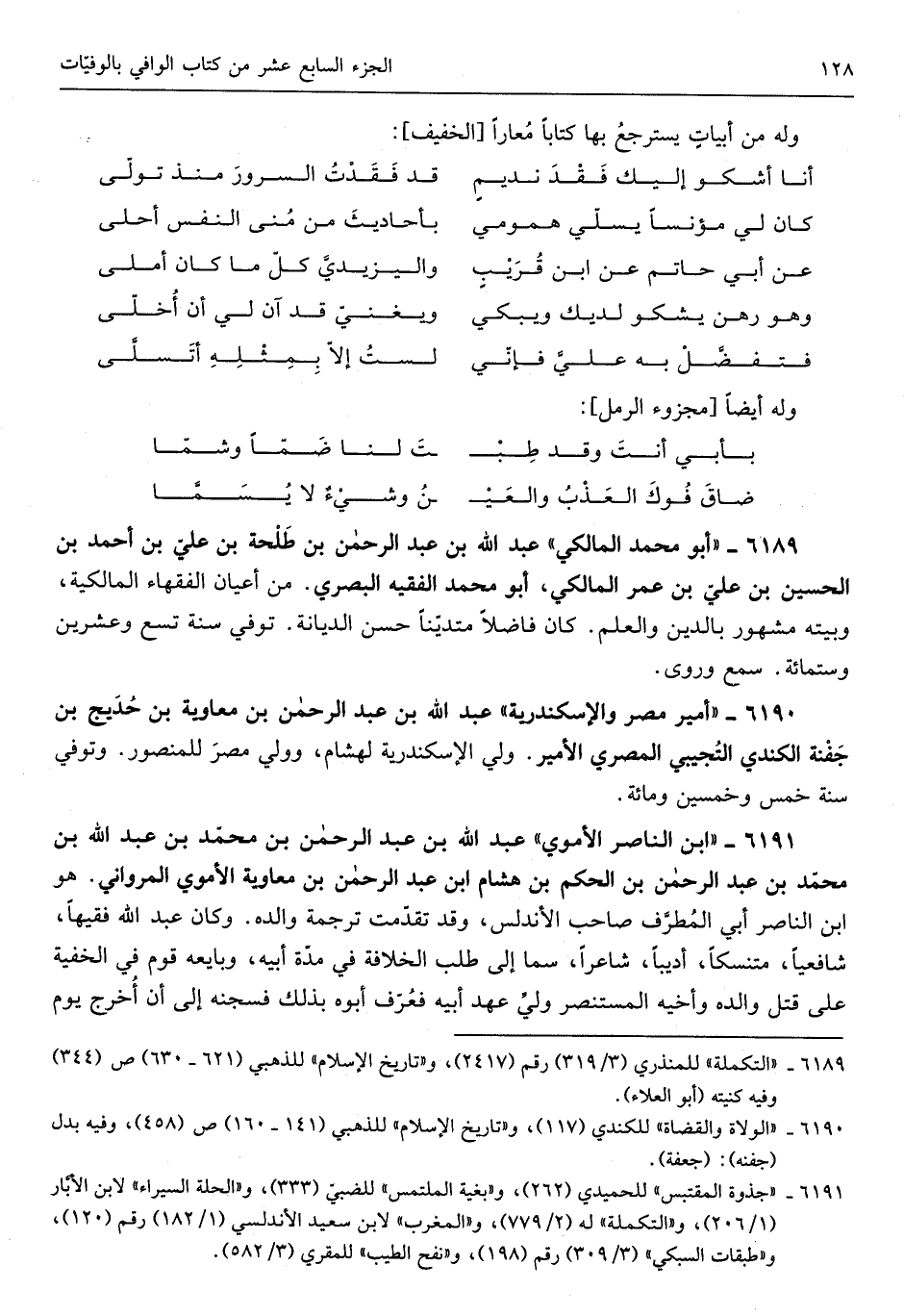 ابْن النَّاصِر الْأمَوِي عبد الله بن عبد الرحمان بن مُحَمَّد بن عبد الله بن مُحَمَّد بن عبد الرحمان ابْن الحكم بن هِشَام بن عبد الرحمان بن مُعَاوِيَة الْأمَوِي المرواني هُوَ ابْن النَّاصِر أبي الْمطرف صَاحب الأندلس وَقد تقدّمت تَرْجَمَة وَالِده وَكَانَ عبد الله فَقِيها شافعياً متنسكاً أديباً شَاعِرًا سما إِلَى طلب الْخلَافَة فِي مُدَّة أَبِيه وَبَايَعَهُ قوم فِي الْخفية على قتل وَالِده وأخيه الْمُسْتَنْصر ولي عهد أَبِيه فَعرف أَبوهُ بذلك فسجنه إِلَى أَن أخرج يَوْم