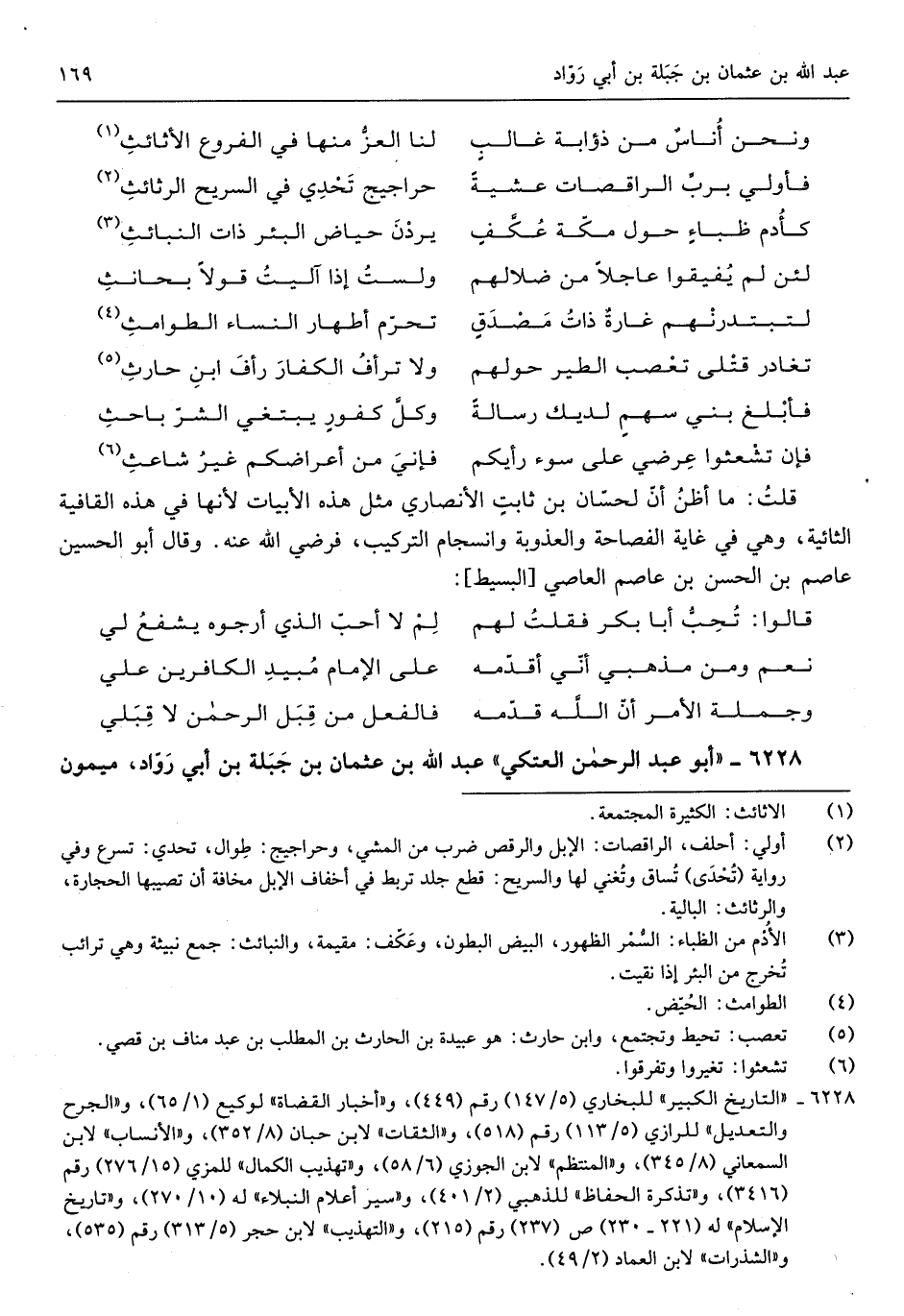 قلت مَا أَظن أَن لحسان بن ثابتٍ الْأنْصَارِيّ مثل هَذِه الأبيات لِأَنَّهَا فِي هَذِه القافية الثائية وَهِي فِي غَايَة الفصاحة والعذوبة وانسجام التَّرْكِيب فَرضِي الله عَنهُ وَقَالَ أَبُو الْحُسَيْن عَاصِم بن الْحسن بن عَاصِم العَاصِي من الْبَسِيط
