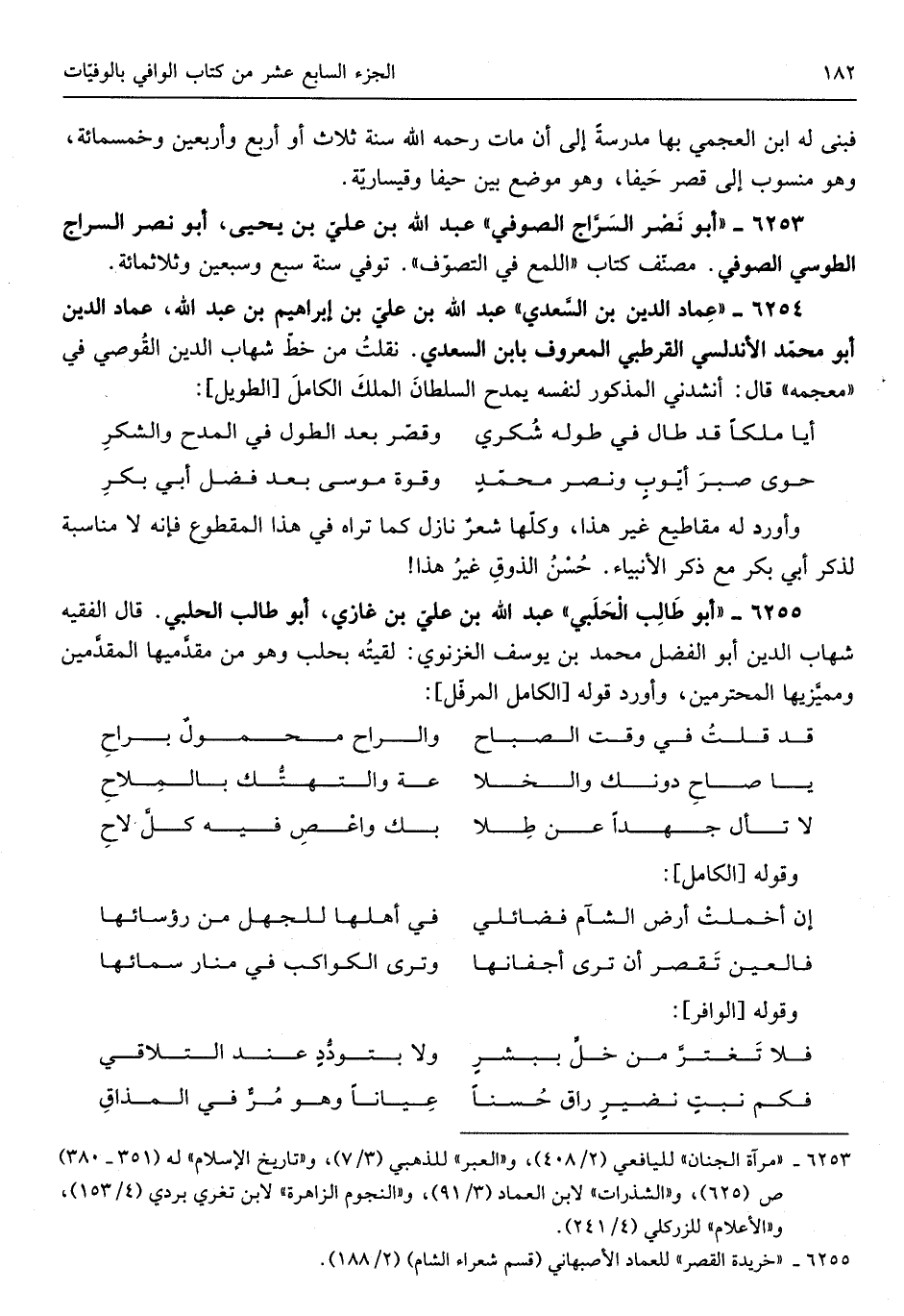 وَأورد لَهُ مقاطيع غير هَذَا وَكلهَا شعرٌ نَازل كَمَا ترَاهُ فِي هَذَا الْمَقْطُوع فَإِنَّهُ لَا مُنَاسبَة لذكر أبي بكر مَعَ ذكر الْأَنْبِيَاء حسن الذَّوْق غير هَذَا أَبُو طَالب الْحلَبِي عبد الله بن عَليّ بن غَازِي أَبُو طَالب الْحلَبِي قَالَ الْفَقِيه شهَاب الدّين أَبُو الْفضل مُحَمَّد بن يُوسُف الغزنوي لَقيته بحلب وَهُوَ من مقدميها المقدمين ومميزيها المحترمين وَأورد قَوْله من)