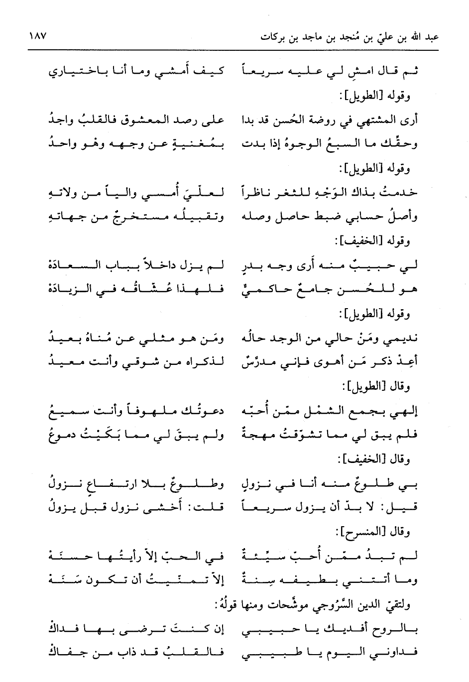 (أعد ذكر من أَهْوى فَإِنِّي مدرسٌ ... لذكراه من شوقي وَأَنت معيد)