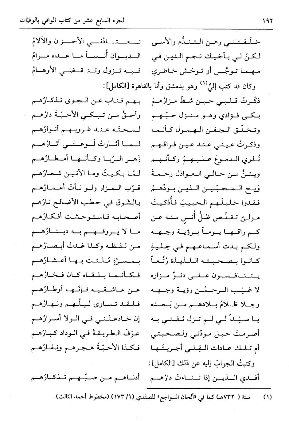 وَكَانَ قد كتب إِلَيّ وَهُوَ بِدِمَشْق وَأَنا بِالْقَاهِرَةِ من الْكَامِل