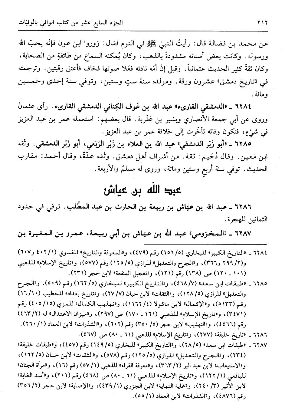 الدِّمَشْقِي الْقَارئ عبد الله بن عَوْف الْكِنَانِي الدِّمَشْقِي الْقَارئ رأى عُثْمَان وروى عَن أبي جُمُعَة الْأنْصَارِيّ وَبشير بن عقربة قَالَ بَعضهم اسْتَعْملهُ عمر بن عبد الْعَزِيز فِي شيءٍ فَتكون وَفَاته تَأَخَّرت إِلَى خلَافَة عمر بن عبد الْعَزِيز