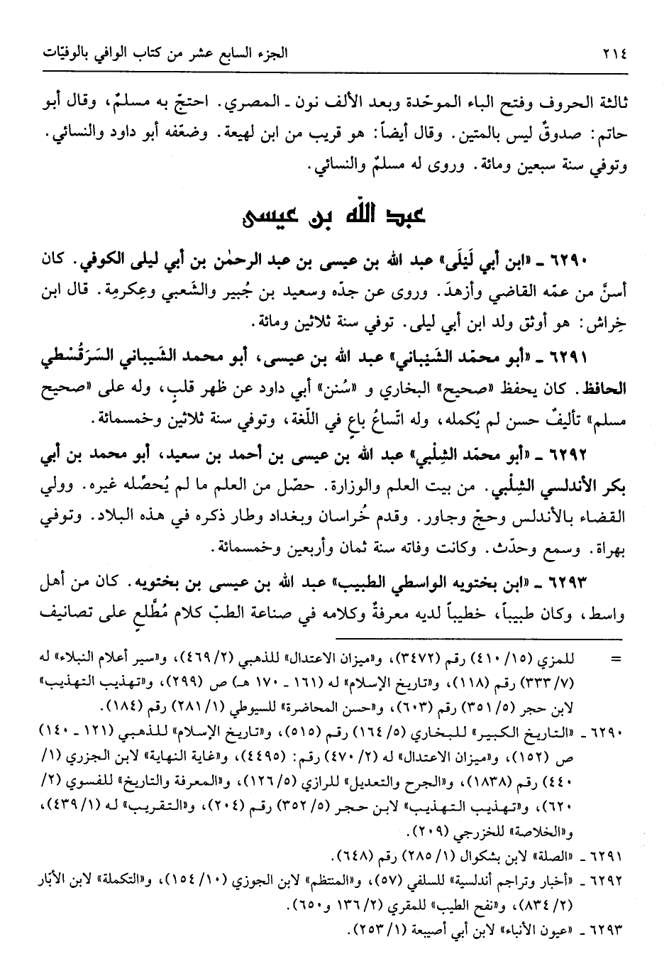 أَبُو مُحَمَّد الشَّيْبَانِيّ عبد الله بن عِيسَى أَبُو مُحَمَّد الشَّيْبَانِيّ السَّرقسْطِي الْحَافِظ كَانَ يحفظ صَحِيح البُخَارِيّ وَسنَن أبي دَاوُد عَن ظهر قلبٍ وَله على صَحِيح مُسلم تأليفٌ حسن لم يكمله وَله اتساع بَاعَ فِي اللُّغَة وَتُوفِّي سنة ثَلَاثِينَ وَخَمْسمِائة