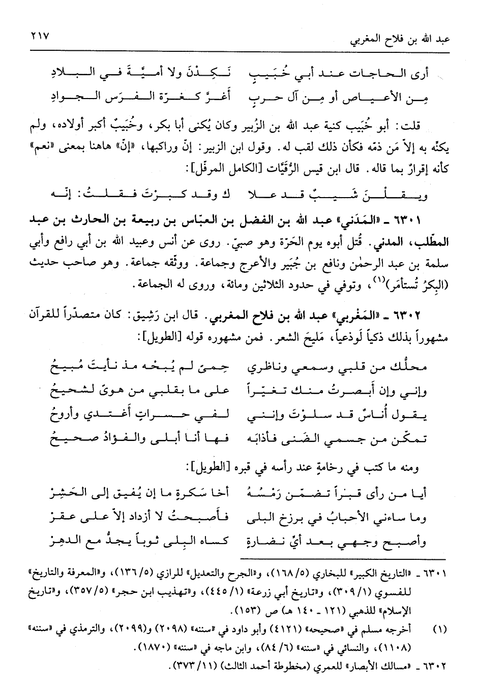 المغربي عبد الله بن فلاح المغربي قَالَ ابْن رَشِيق كَانَ متصدراً لِلْقُرْآنِ مَشْهُورا بذلك ذكياً لوذعياً مليح الشّعْر فَمن مشهوره قَوْله من الطَّوِيل