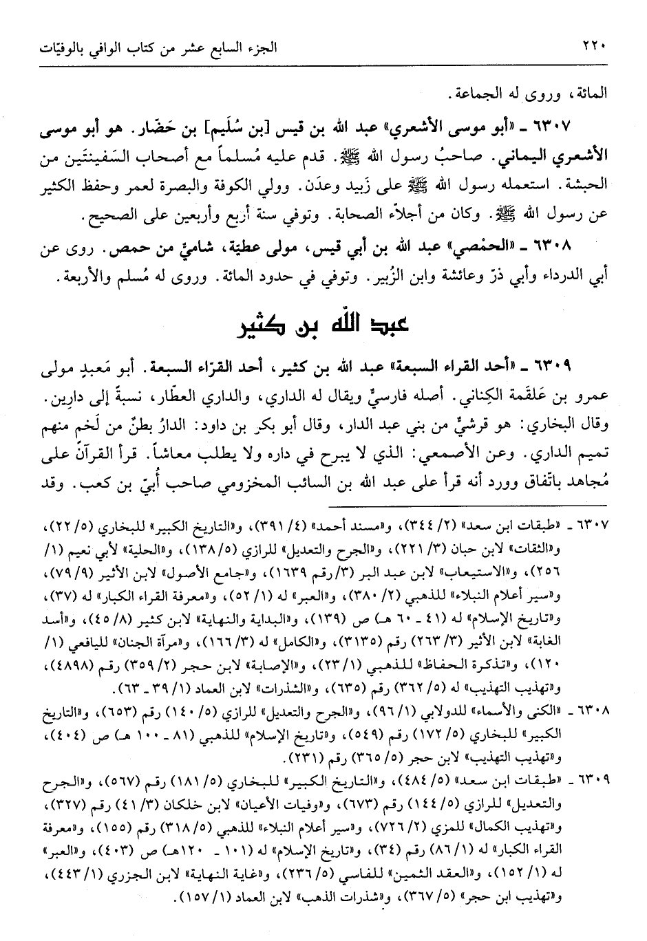 أحد الْقُرَّاء السَّبْعَة عبد الله بن كثير أحد الْقُرَّاء السَّبْعَة أَبُو معبدٍ مولى عَمْرو بن عَلْقَمَة الْكِنَانِي أَصله فَارسي وَيُقَال لَهُ الدَّارِيّ الْعَطَّار نِسْبَة إِلَى دارين وَقَالَ البُخَارِيّ هُوَ قرشي من بني عبد الدَّار وَقَالَ أَبُو بكر بن دَاوُد الدَّار بطنٌ من لخمٍ مِنْهُم تَمِيم الدَّارِيّ وَعَن الْأَصْمَعِي الَّذِي لَا يبرح فِي دَاره وَلَا يطْلب معاشاً قَرَأَ الْقُرْآن على مُجَاهِد باتفاف وَورد أَنه قَرَأَ على عبد الله بن السَّائِب المَخْزُومِي صَاحب أبي بن كَعْب وَقد