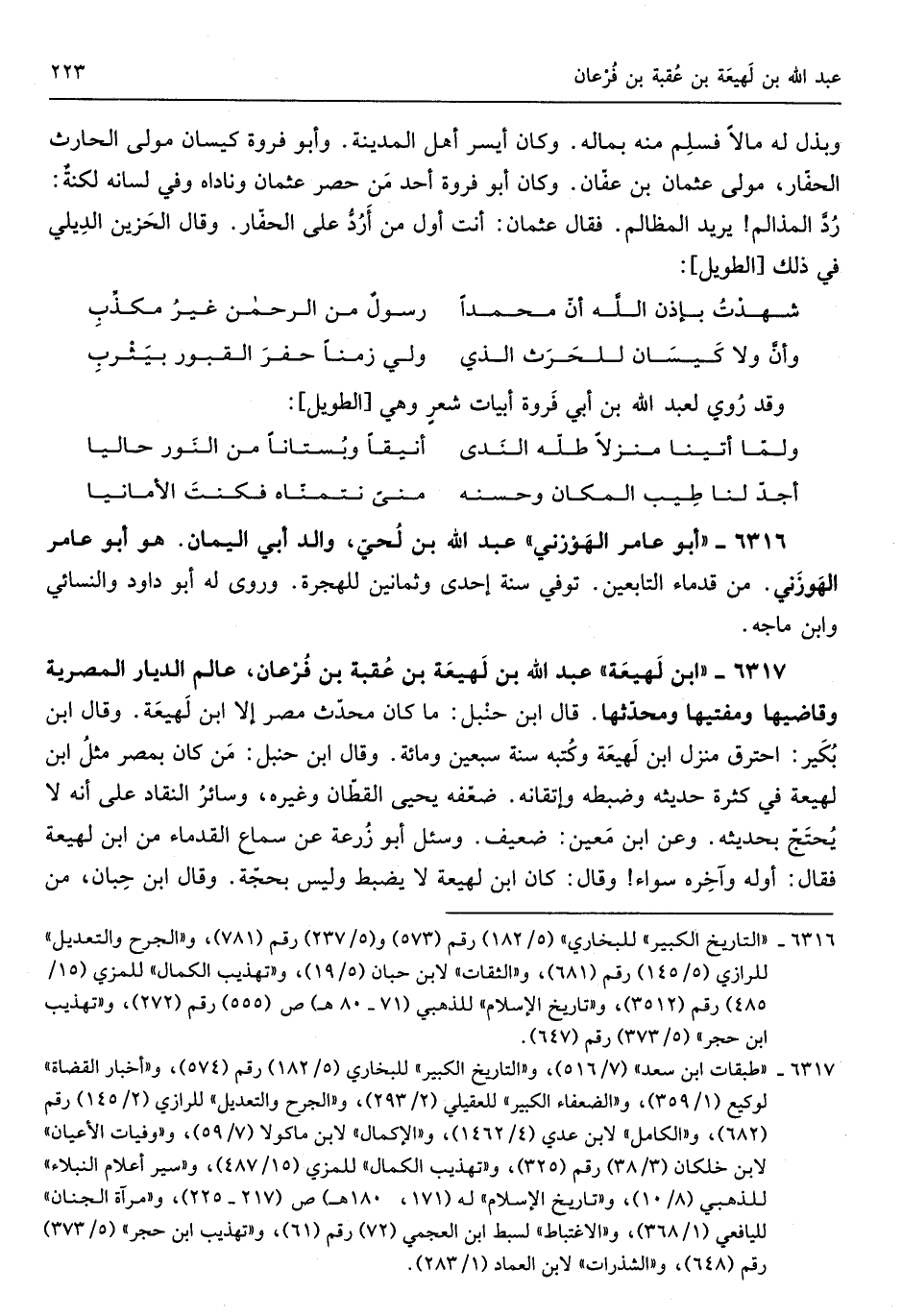 ابْن لهيعه عبد الله بن لَهِيعَة بن عقبَة بن فرعان عَالم الديار المصرية وقاضيها ومفتيها ومحدثها قَالَ ابْن حَنْبَل مَا كَانَ مُحدث مصر إِلَّا ابْن لَهِيعَة وَقَالَ ابْن بكير إحترق منزل ابْن لَهِيعَة وَكتبه سنة سبعين وَمِائَة وَقَالَ ابْن حَنْبَل من كَانَ بِمصْر مثل ابْن لَهِيعَة فِي كَثْرَة حَدِيثه وَضَبطه وإتقانه ضعفه يحيى الْقطَّان وَغَيره وَسَائِر النقاد على أَنه لَا يحْتَج بحَديثه وَعَن ابْن معِين ضَعِيف وَسُئِلَ أَبُو زرْعَة عَن سَماع القدماء من ابْن لَهِيعَة فَقَالَ أَوله وَآخره سَوَاء وَقَالَ كَانَ ابْن لَهِيعَة لَا يضْبط وَلَيْسَ بِحجَّة وَقَالَ ابْن حبَان من