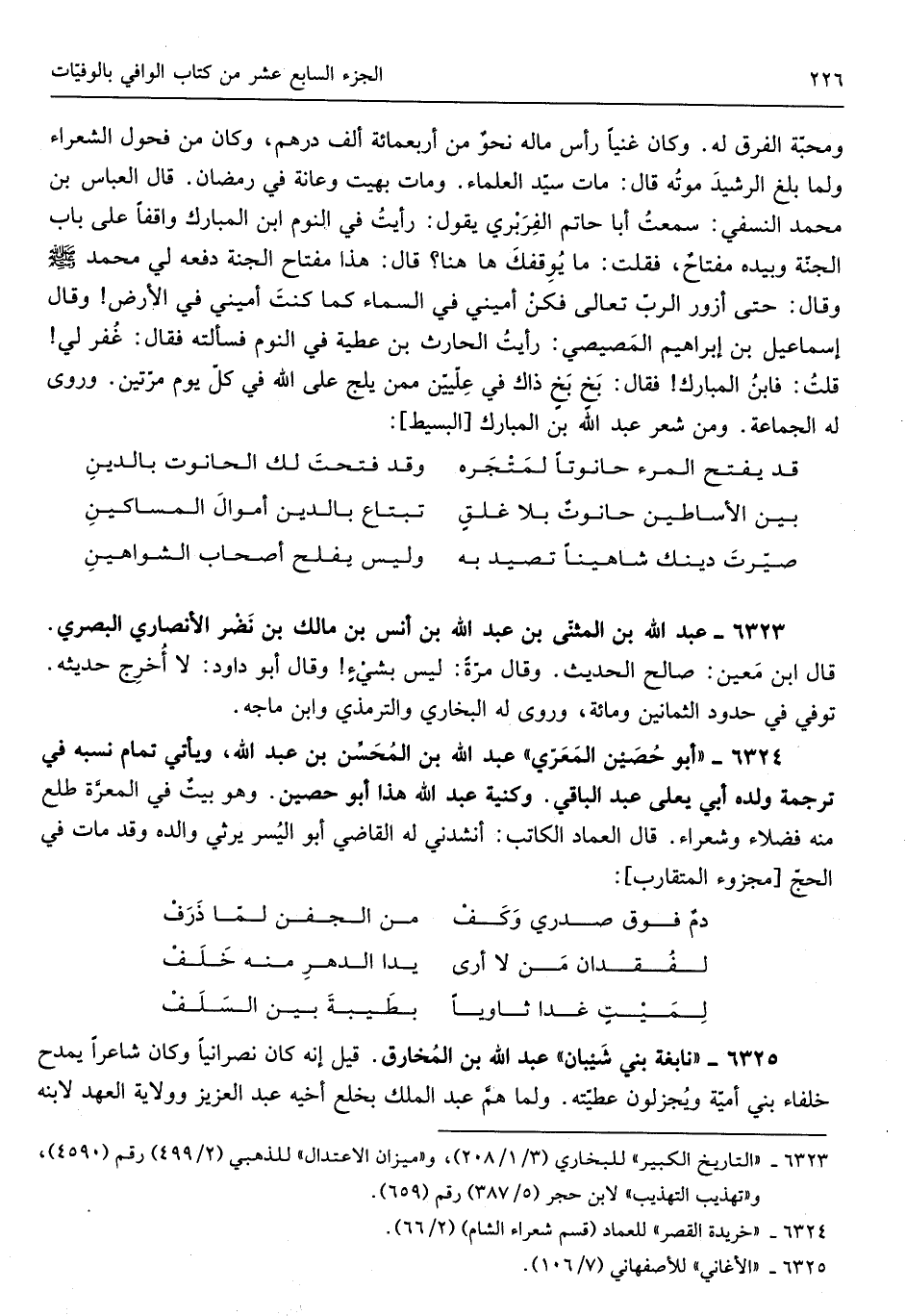 أَبُو حُصَيْن المعري عبد الله بن المحسن بن عبد الله وَيَأْتِي تَمام نسبه فِي تَرْجَمَة وَلَده أبي يعلى عبد الْبَاقِي وكنيته عبد الله هَذَا أَبُو حُصَيْن وَهُوَ بيتٌ فِي المعرة طلع مِنْهُ فضلاء وشعراء قَالَ الْعِمَاد الْكَاتِب أَنْشدني لَهُ القَاضِي أَبُو الْيُسْر يرثي وَالِده وَقد مَاتَ فِي الْحَج من مجزوء المتقارب