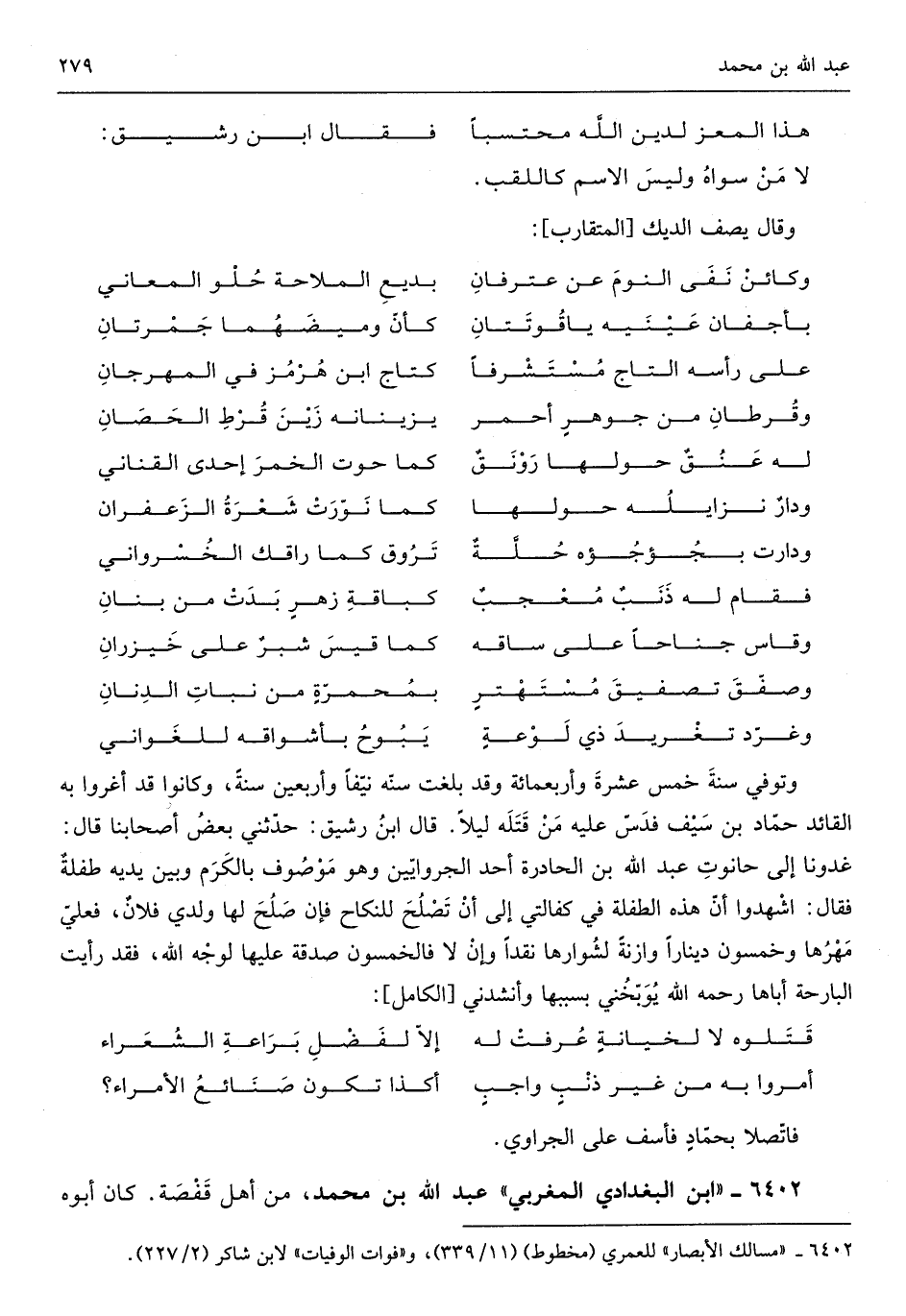 (قَتَلُوهُ لَا لخيانةٍ عرفت لَهُ ... إِلَّا لفضل براعة الشُّعَرَاء)