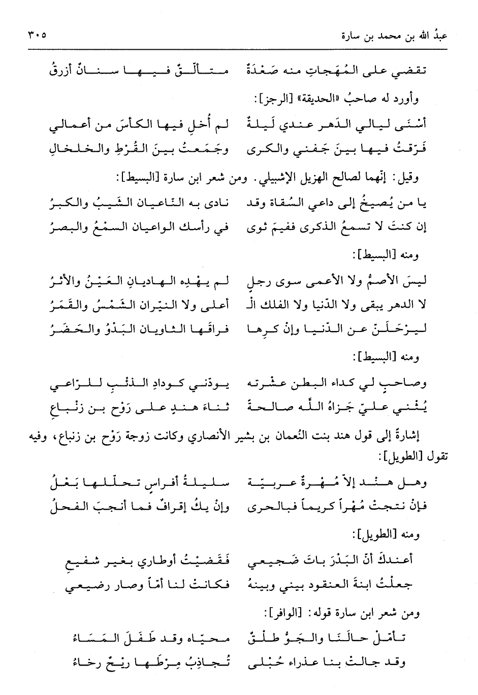 وَقيل إنَّهُمَا لصالح الهزيل الإشبيلي وَمن شعره ابْن سارة من الْبَسِيط