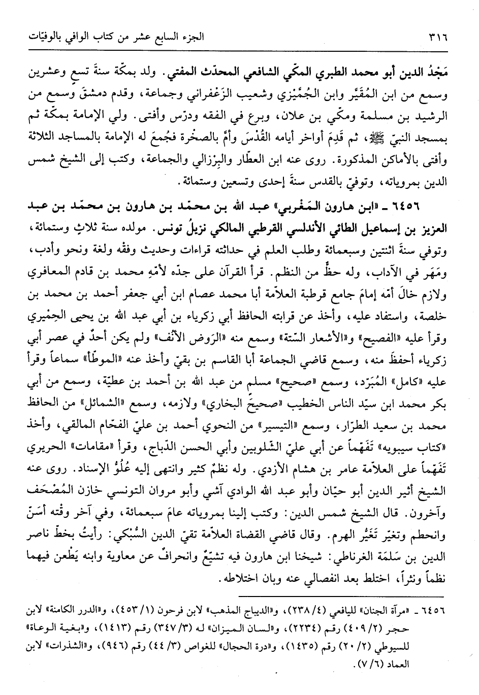 عبد الله بن مُحَمَّد بن هَارُون بن مُحَمَّد بن عبد الْعَزِيز بن إِسْمَاعِيل الطَّائِي الأندلسي الْقُرْطُبِيّ الْمَالِكِي نزيل تونس مولده سنة ثلاثٍ وسِتمِائَة وَتُوفِّي سنة اثْنَتَيْنِ وَسَبْعمائة وَطلب الْعلم فِي حدائثته قراآتٍ وَحَدِيث وَفقه ولغة وَنَحْو وأدب وَمهر فِي الْآدَاب وَله حظٌ من النّظم قَرَأَ الْقُرْآن على جده لأمه مُحَمَّد بن قادم الْمعَافِرِي ولازم خَال أمه إِمَام جَامع قرطبة الْعَلامَة أَبَا مُحَمَّد عِصَام ابْن أبي جَعْفَر أَحْمد بن مُحَمَّد بن خلصة واستفاد عَلَيْهِ وَأخذ على قرَابَته الْحَافِظ أبي زَكَرِيَّاء بن أبي عبد الله بن يحيى الْحِمْيَرِي وَقَرَأَ عَلَيْهِ الفصيح والأشعار السِّتَّة وَسمع مِنْهُ الرَّوْض الْأنف وَلم يكن أحدٌ فِي عصر أبي ذكرياء أحفظ مِنْهُ وَسمع قَاضِي الْجَمَاعَة أَبَا الْقَاسِم بن بَقِي وَأخذ عَنهُ الْمُوَطَّأ سَمَاعا وَقَرَأَ عَلَيْهِ كَامِل لمبرد وَسمع صَحِيح مسلمٍ من عبد الله بن أَحْمد بن عَطِيَّة وَسمع من أبي بكر مُحَمَّد بن سيد النَّاس الْخَطِيب صَحِيح البُخَارِيّ ولازمه وَسمع الشَّمَائِل من الْحَافِظ مُحَمَّد بن سعيد الطرار وَسمع التَّيْسِير من النَّحْوِيّ أَحْمد بن عَليّ الفحام المالقي وَأخذ كتاب سِيبَوَيْهٍ تفهماً عَن أبي عَليّ الشلوبين وَأبي الْحسن الدباج وَقَرَأَ مقامات الحريري تفهماً على الْعَلامَة عَامر بن هِشَام الْأَزْدِيّ وَله نظمٌ كثير وانْتهى إِلَيْهِ علو الْإِسْنَاد روى عَنهُ الشَّيْخ أثير الدّين أَبُو حَيَّان وَأَبُو عبد الله الْوَادي آشي وَأَبُو مَرْوَان التّونسِيّ خَازِن الْمُصحف وَآخَرُونَ قَالَ الشَّيْخ شمس الدّين وَكتب إِلَيْنَا بمروياته عَام سَبْعمِائة وَفِي آخر وقته أسن وانحطم وَتغَير تغير الْهَرم وَقَالَ قَاضِي الْقُضَاة الْعَلامَة تَقِيّ الدّين السُّبْكِيّ رَأَيْت بِخَط نَاصِر الدّين بن سَلمَة الغرناطي شَيخنَا ابْن هَارُون فِيهِ تشيعٌ وانحرافٌ عَن مُعَاوِيَة وَابْنه يطعن فيهمَا نظماً ونثراً اخْتَلَط بعد انفصالي عَنهُ وَبَان اخْتِلَاطه