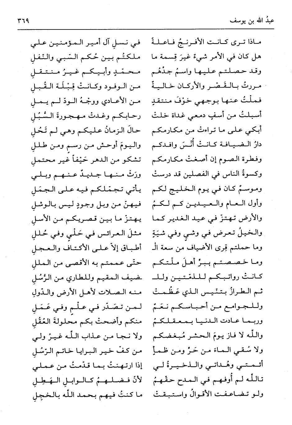 (مَاذَا ترى كَانَت الأفرنجٍ فاعلةً ... فِي نسل آل أَمِير الْمُؤمنِينَ عَليّ)