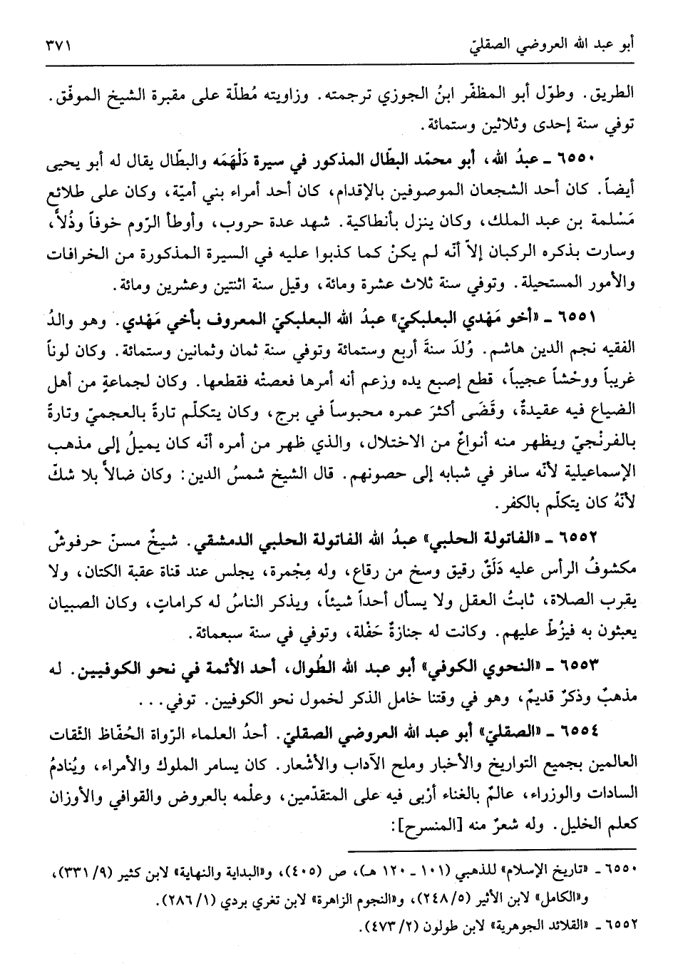 الصّقليّ أَبُو عبد الله الْعَرُوضِي الصّقليّ أحد الْعلمَاء الروَاة الْحفاظ الثِّقَات الْعَالمين بِجَمِيعِ التواريخ وَالْأَخْبَار وملح الْآدَاب والأشعار كَانَ يسامر الْمُلُوك والأمراء وينادم السادات والوزراء عالمٌ بِالْغنَاءِ أربى فِيهِ على الْمُتَقَدِّمين وَعلمه بالعروض والقوافي والأوزان كعلم الْخَلِيل وَله شعرٌ مِنْهُ من المنسرح