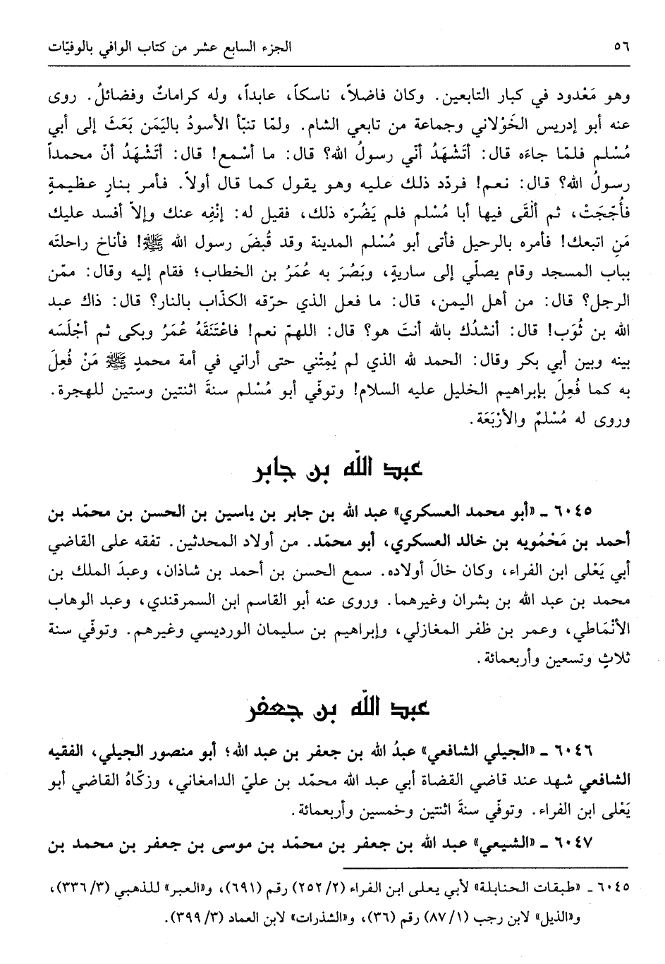 الجيلي الشَّافِعِي عبد الله بن جَعْفَر بن عبد الله أَبُو مَنْصُور الجيلي الْفَقِيه الشَّافِعِي شهد عِنْد قَاضِي الْقُضَاة أبي عبد الله مُحَمَّد بن عَليّ الدَّامغَانِي وزكاه القَاضِي أَبُو يعلى ابْن الْفراء وَتُوفِّي سنة اثْنَتَيْنِ وَخمسين وَأَرْبَعمِائَة