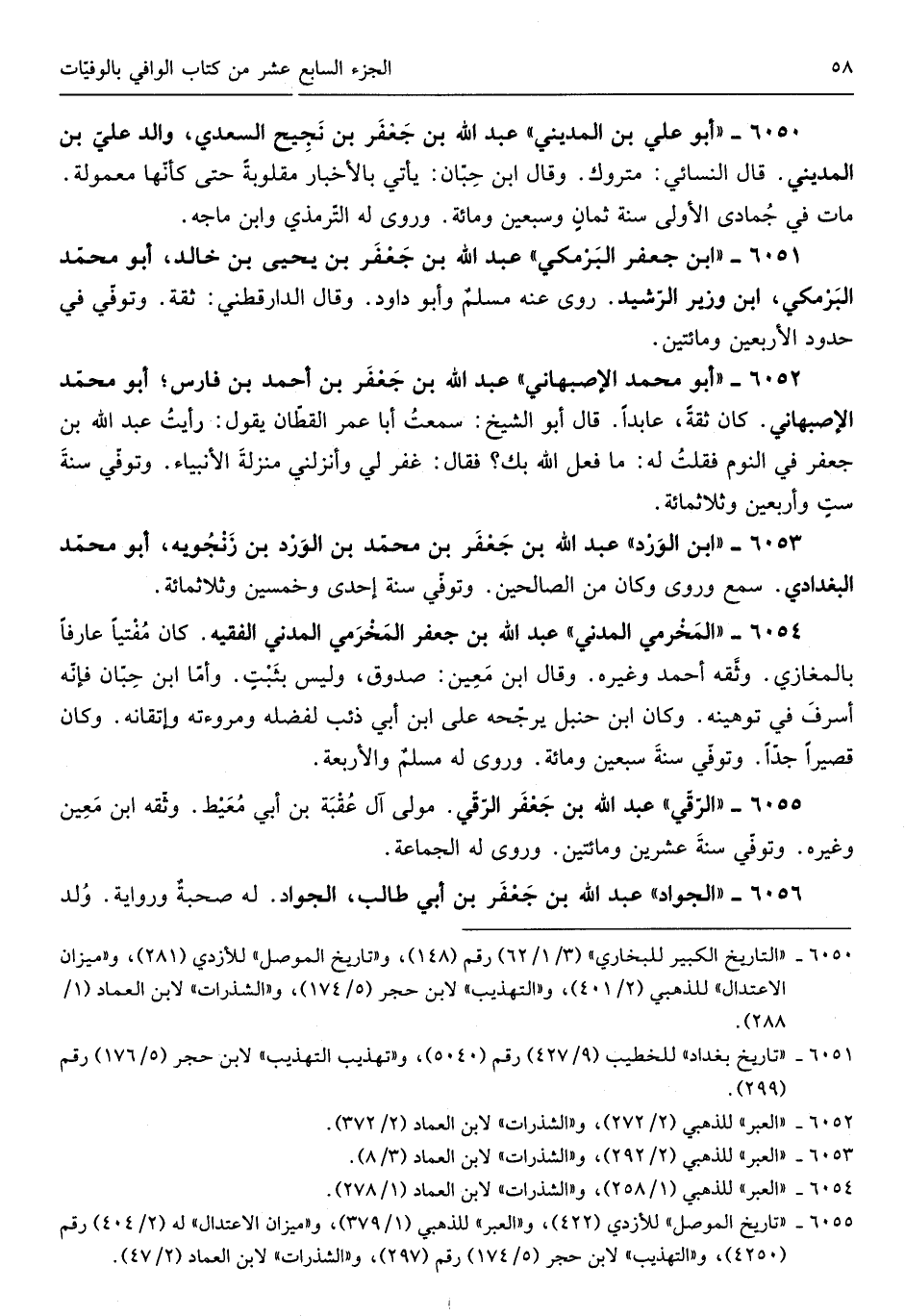 الرقي عبد الله بن جعفرالرقي مولى آل عقبَة بن أبي معيط وَثَّقَهُ ابْن معِين وَغَيره وَتُوفِّي سنة عشْرين وَمِائَتَيْنِ وروى لَهُ الْجَمَاعَة