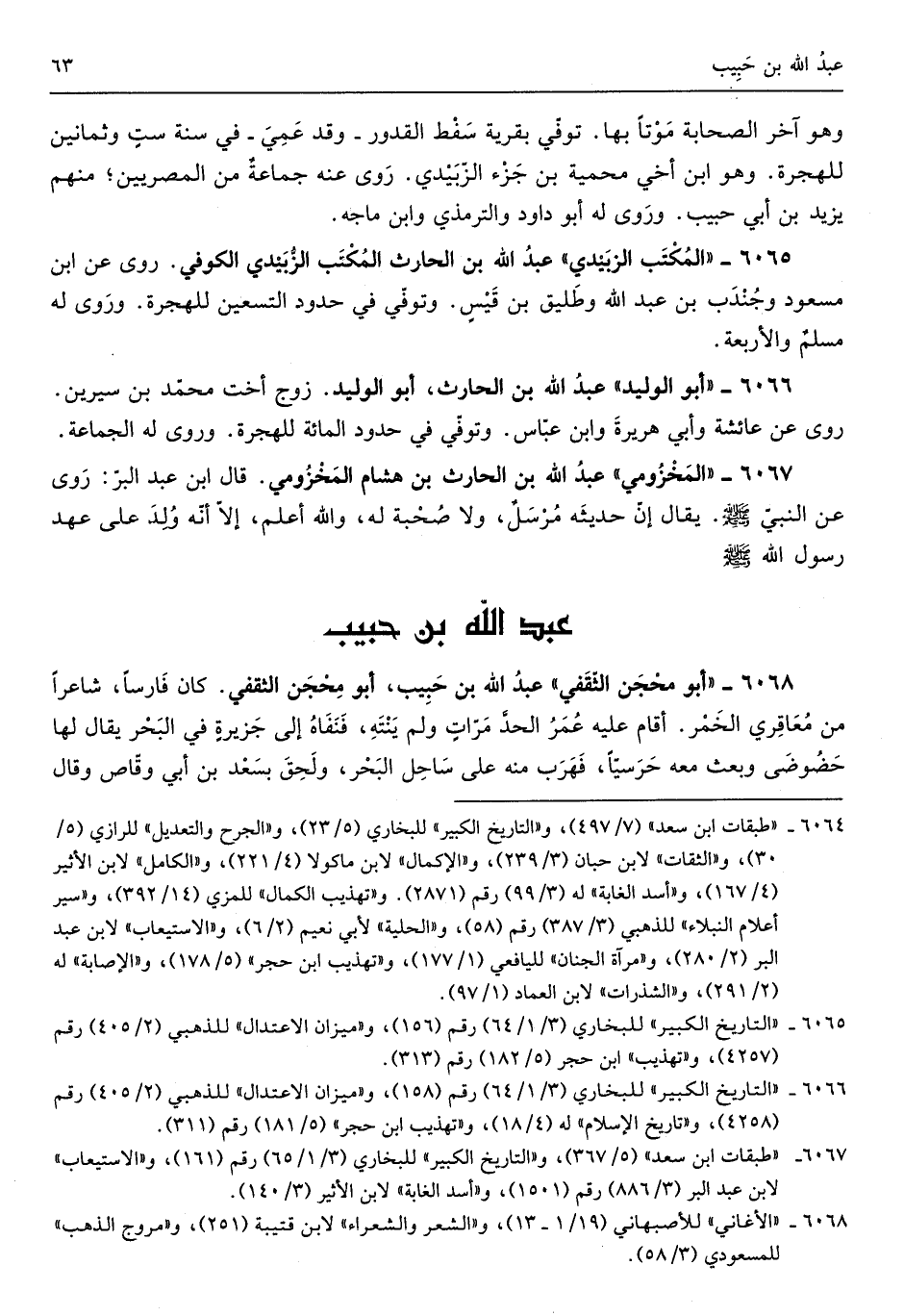 أَبُو محجن الثَّقَفِيّ عبد الله بن حبيب أَبُو محجن الثَّقَفِيّ كَانَ فَارِسًا شَاعِرًا من معاقري الْخمر أَقَامَ عَلَيْهِ عمر الْحَد الْحَد مراتٍ وَلم ينْتَه فنفاه إِلَى جزيرةٍ فِي الْبَحْر يُقَال لَهَا حضوضى وَبعث مَعَه حرسياً فهرب مِنْهُ على سَاحل الْبَحْر وَلحق بِسَعْد بن أبي وَقاص وَقَالَ من الْبَسِيط