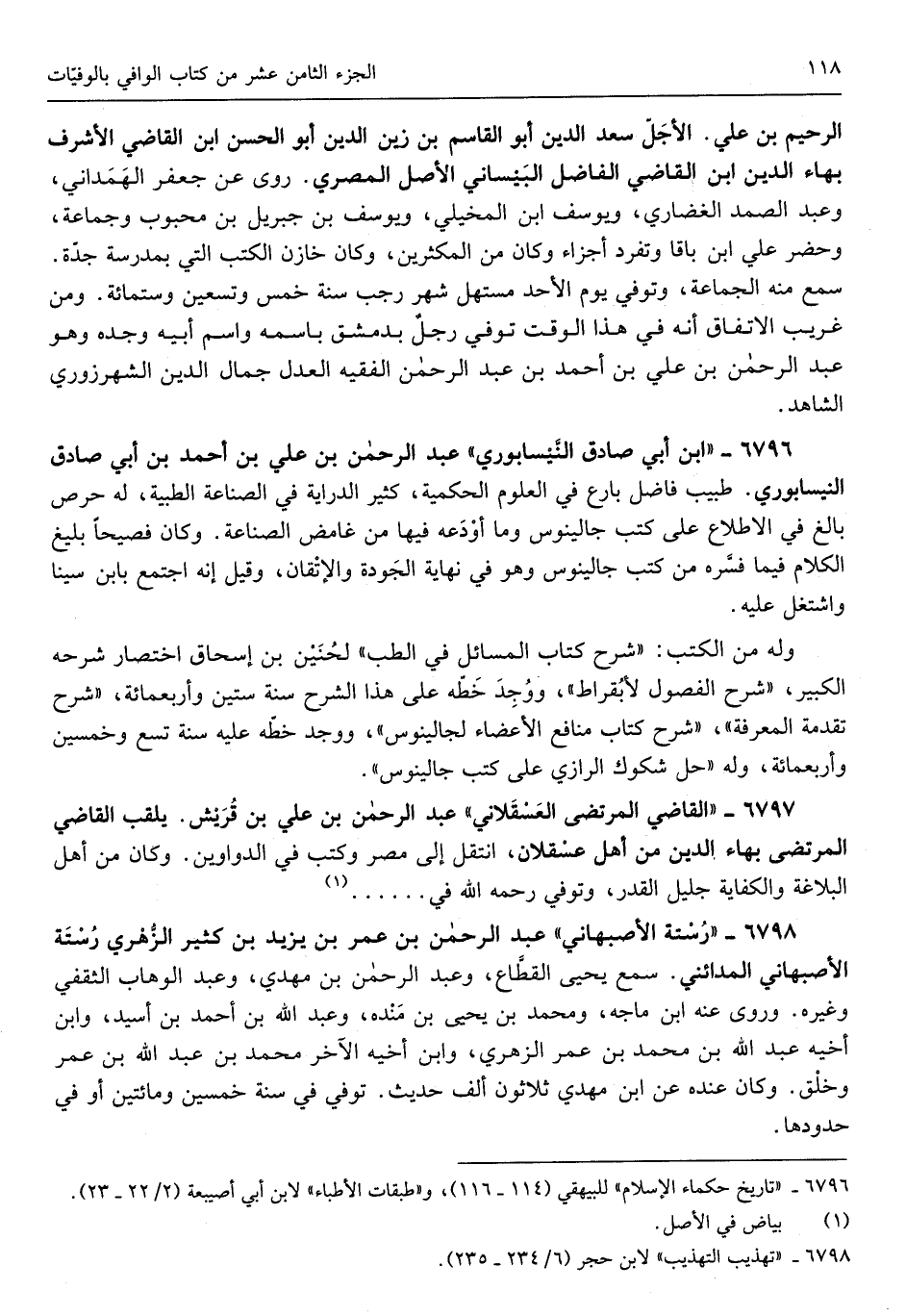 الرَّحِيم بن عَليّ الْأَجَل سعد الدّين أَبُو الْقَاسِم بن زين الدّين أَبُو الْحسن ابْن القَاضِي الْأَشْرَف بهاء الدّين ابْن القَاضِي الْفَاضِل البيساني الأَصْل الْمصْرِيّ روى عَن جَعْفَر الْهَمدَانِي وَعبد الصَّمد الغضاري ويوسف ابْن المخيلي ويوسف بن جِبْرِيل بن مَحْبُوب وَجَمَاعَة وَحضر عَليّ ابْن باقا وَتفرد أَجزَاء وَكَانَ من المكثرين وَكَانَ خَازِن الْكتب الَّتِي بمدرسة جده سمع مِنْهُ الْجَمَاعَة وَتُوفِّي يَوْم الْأَحَد مستهل شهر رَجَب سنة خمس وَتِسْعين وست مائَة وَمن غَرِيب الِاتِّفَاق أَنه فِي هَذَا الْوَقْت توفّي رجل بِدِمَشْق باسمه وَاسم أَبِيه وجده وَهُوَ عبد الرَّحْمَن بن عَليّ بن أَحْمد بن عبد الرَّحْمَن الْفَقِيه الْعدْل جمال الدّين الشهرزوري الشَّاهِد