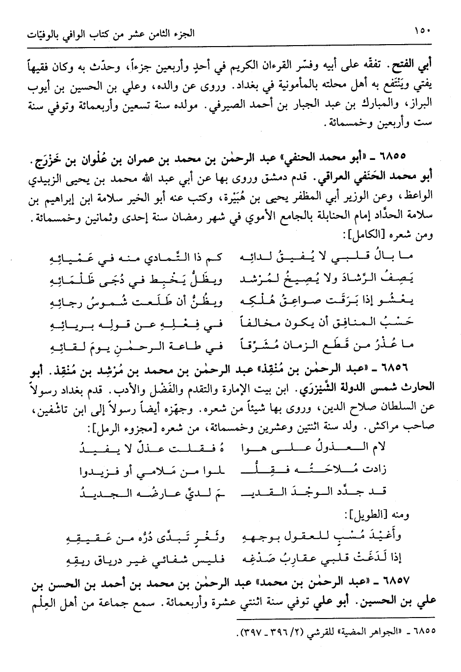 عبد الرَّحْمَن بن مُحَمَّد بن مرشد بن منقذ أَبُو الْحَارِث شمس الدولة الشيزري ابْن بَيت الْإِمَارَة والتقدم وَالْفضل وَالْأَدب قدم بغداذ رَسُولا عَن السُّلْطَان صَلَاح الدّين وروى بهَا شَيْئا من شعره وجهزه أَيْضا رَسُولا إِلَى ابْن تاشفين صَاحب مراكش ولد سنة اثْنَتَيْنِ وَعشْرين وَخمْس مائَة من شعره مجزوء الْكَامِل