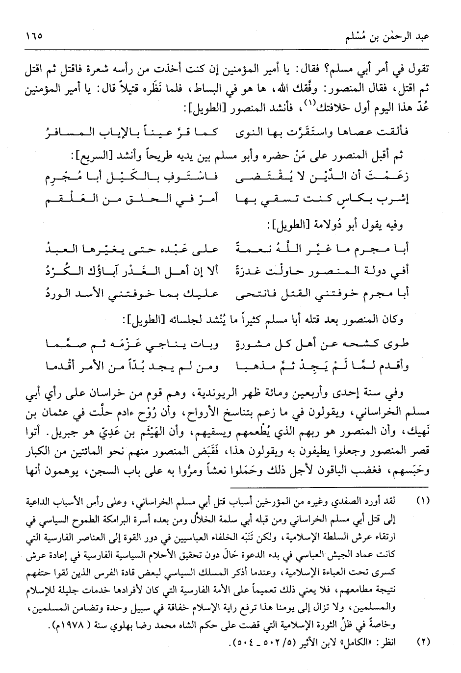 ثمَّ أقبل الْمَنْصُور على من حَضَره وَأَبُو مُسلم بَين يَدَيْهِ طريحاً وَأنْشد السَّرِيع