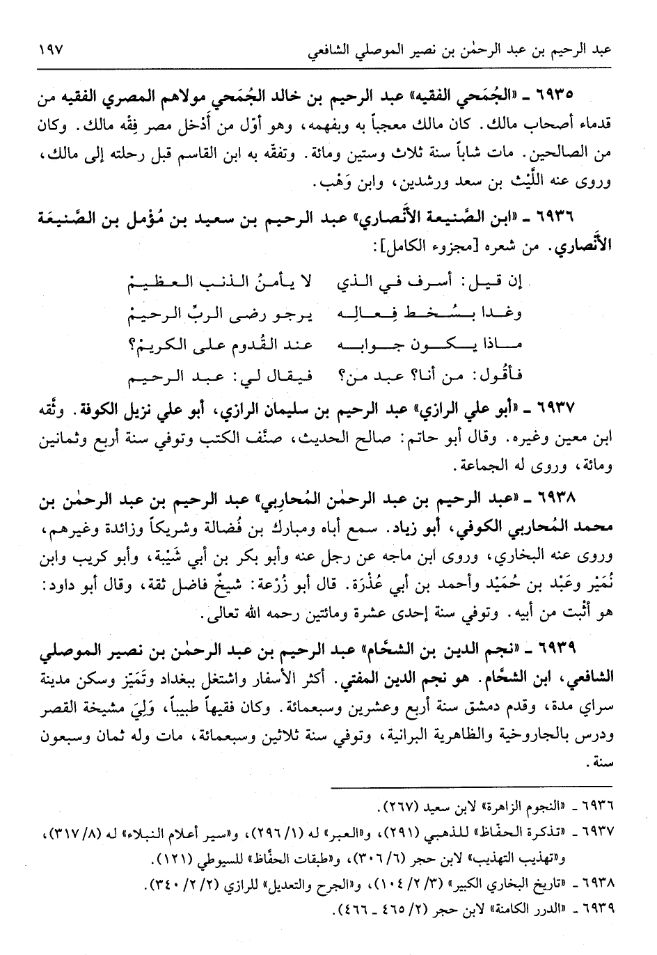 عبد الرَّحِيم بن عبد الرَّحْمَن بن نصير الْموصِلِي الشَّافِعِي ابْن الشحام هُوَ نجم الدّين الْمُفْتِي