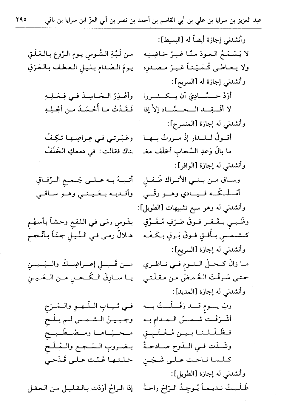 وأنشدني لَهُ إجَازَة السَّرِيع