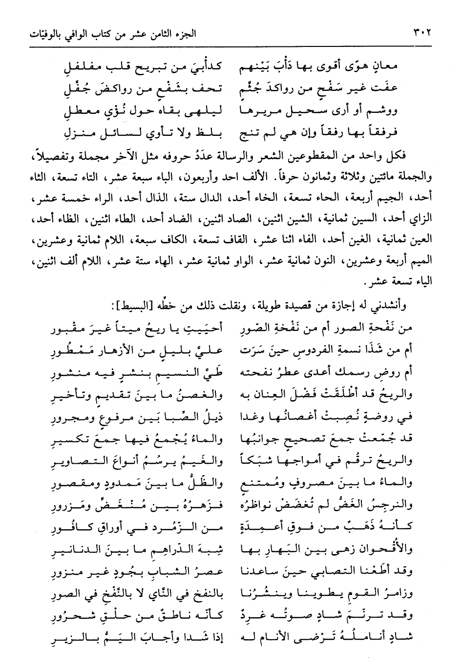 وأنشدني لَهُ إجَازَة من قصيدة طَوِيلَة ونقلت ذَلِك من خطه الْبَسِيط