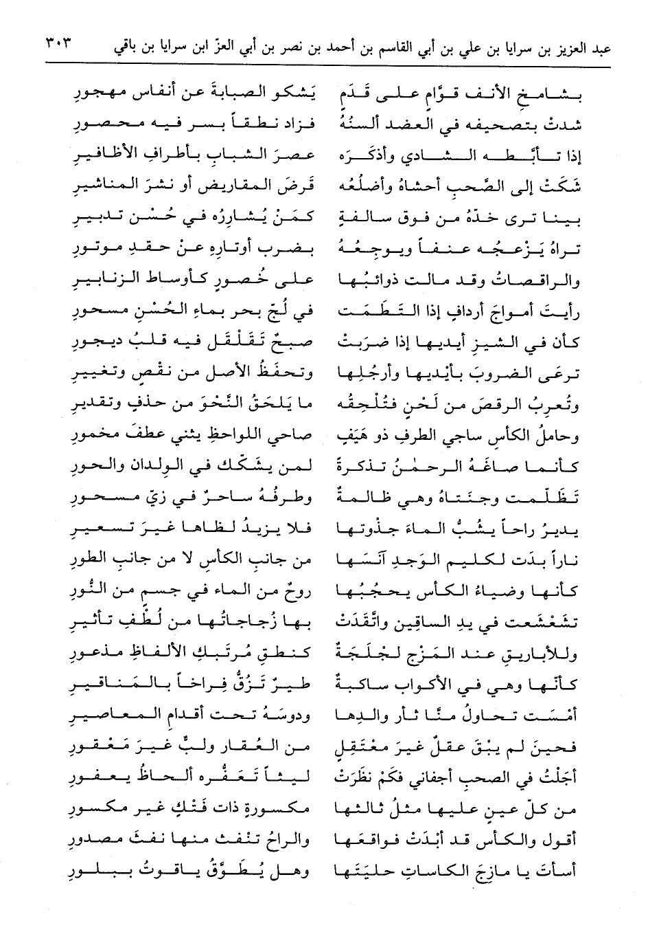 (وحامل الكأس ساجي الطّرف ذُو هيف ... صاحي اللواحظ يثني عطف مخمور)