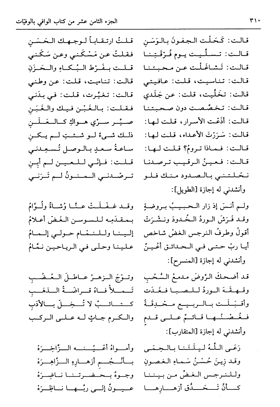 (قَالَت تناسيت قلت عافيتي ... قَالَت تناءيت قَالَت عَن وطني)
