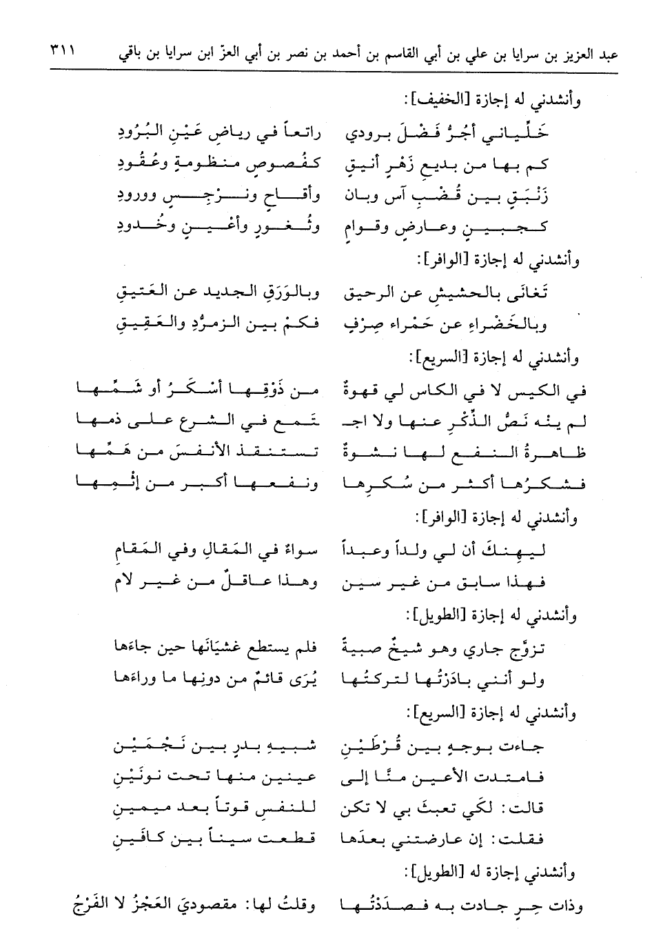 وأنشدني لَهُ إجَازَة السَّرِيع