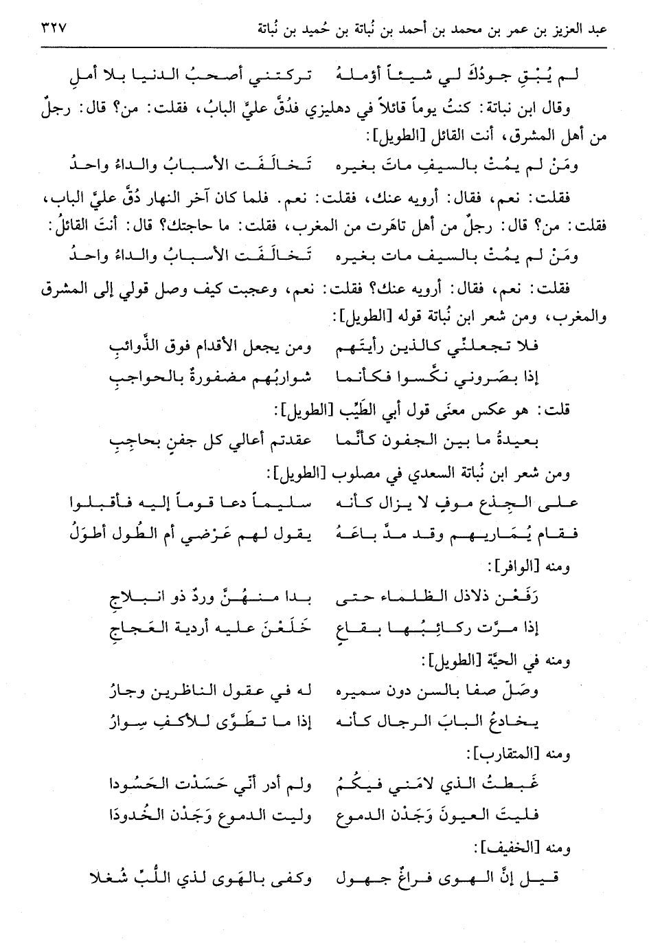 وَمن شعر ابْن نباتة قَوْله الطَّوِيل