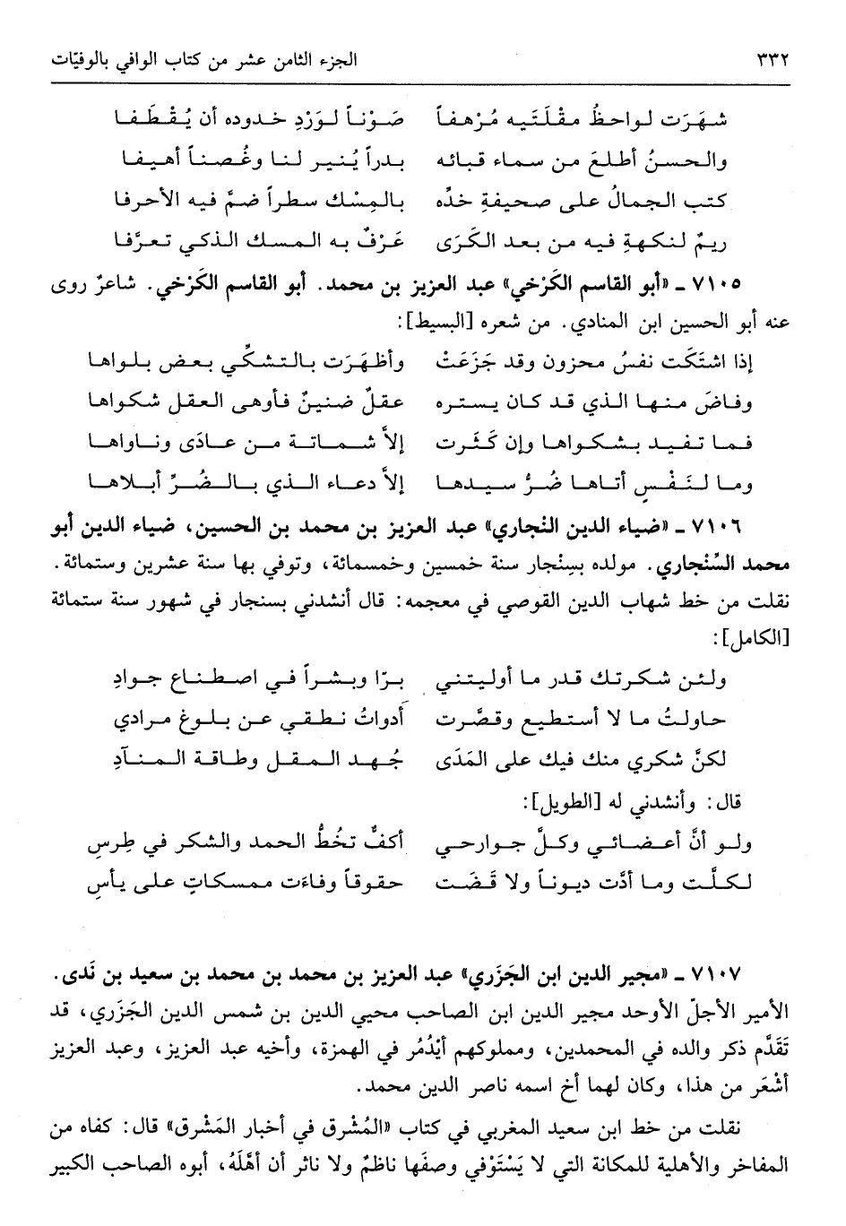 عبد الْعَزِيز بن مُحَمَّد بن مُحَمَّد بن سعيد بن ندى الْأَمِير الْأَجَل الأوحد مجير الدّين ابْن الصاحب محيي الدّين بن شمس الدّين الْجَزرِي قد تقدم ذكر وَالِده فِي المحمدين ومملوكهم أيدمر فِي الْهمزَة وأخيه عبد الْعَزِيز وَعبد الْعَزِيز أشعر من هَذَا وَكَانَ لَهما أَخ اسْمه نَاصِر الدّين مُحَمَّد