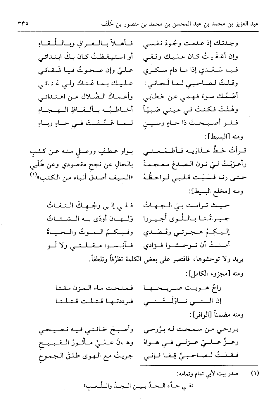 (وَقلت لصاحبي لما لحاني ... عَلَيْك بِمَا عناك ولي عنائي)