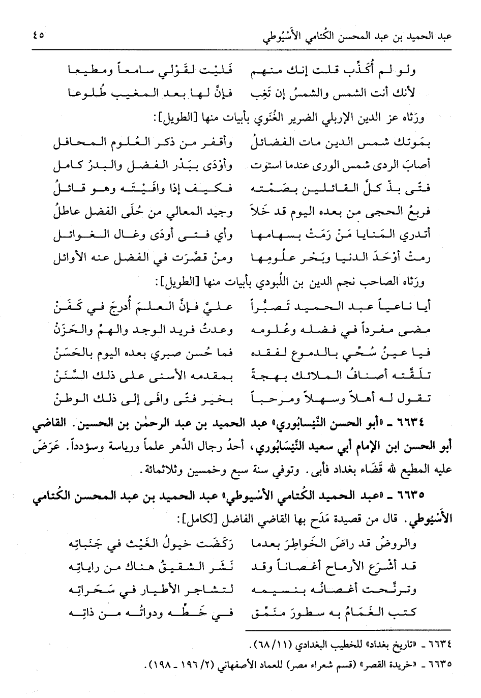 عبد الحميد بن عبد المحسن الكتامي الأسيوطي قَالَ من قصيدة مدح بهَا القَاضِي الْفَاضِل الْكَامِل
