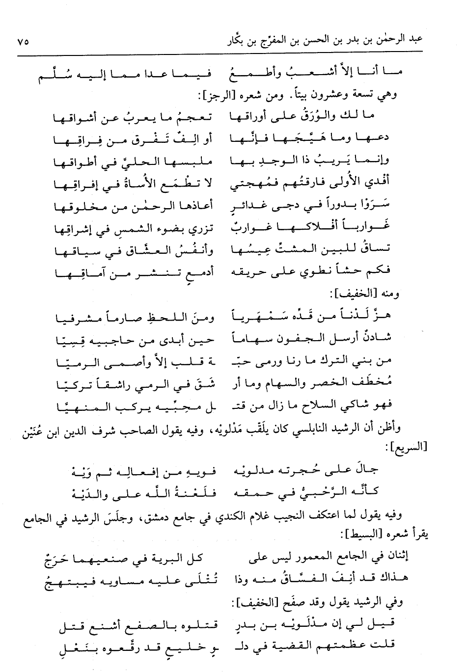 وَفِيه يَقُول لما اعْتكف النجيب غُلَام الْكِنْدِيّ فِي جَامع دمشق وَجلسَ الرشيد فِي الْجَامِع يقْرَأ شعره الْبَسِيط