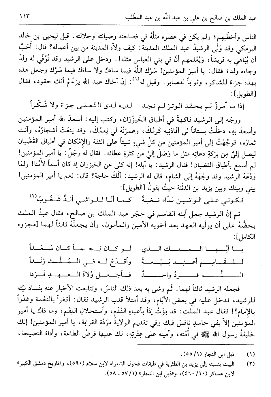 ثمَّ إِن الرشيد جعل ابْنه الْقَاسِم فِي حجر عبد الْملك بن صَالح فَقَالَ عبد الْملك يحضه على أَن يوليه الْعَهْد بعد أَخَوَيْهِ الْأمين والمأمون وَأَن يَجعله ثَالِثا لَهما