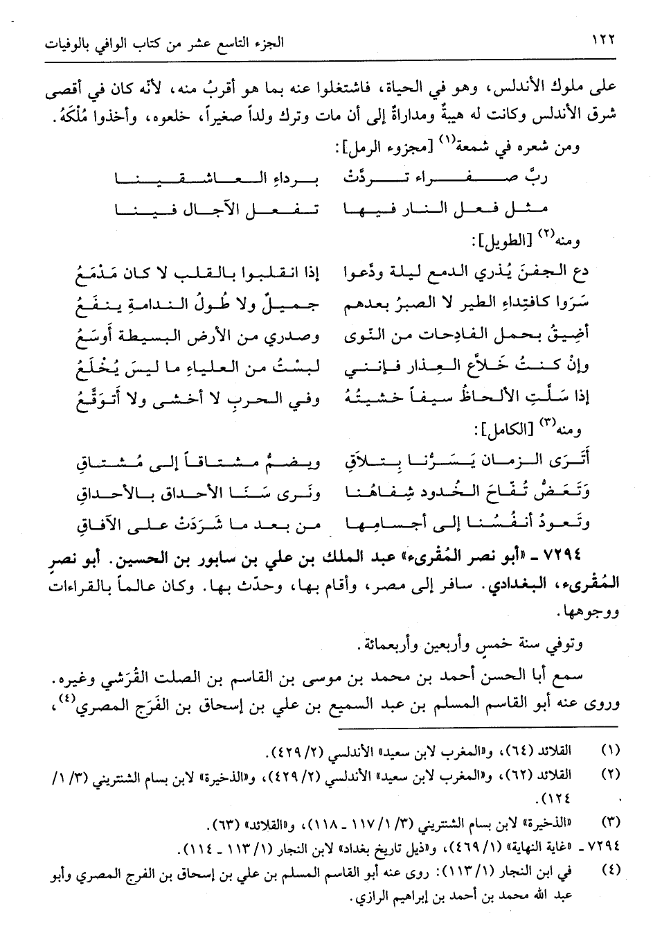 عبد الْملك بن عَليّ بن سَابُور بن الْحُسَيْن أَبُو نصر الْمُقْرِئ الْبَغْدَادِيّ سَافر إِلَى مصر وَأقَام بهَا وَحدث بهَا وَكَانَ عَالما بالقراآت ووجوهها