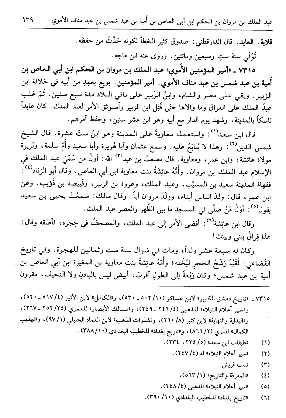 أَمِير الْمُؤمنِينَ بُويِعَ بِعَهْد من أَبِيه فِي خلَافَة ابْن الزبير وَبَقِي على مصر وَالشَّام وَابْن الزبير على بَاقِي الْبِلَاد مُدَّة سبع سِنِين ثمَّ غلب عبد الْملك على الْعرَاق وَمَا والاها حَتَّى قتل ابْن الزبير واستوثق الْأَمر لعبد الْملك كَانَ عابداً ناسكاً بِالْمَدِينَةِ وَشهد يَوْم الدَّار مَعَ أَبِيه وَهُوَ ابْن عشر سِنِين وَحفظ أَمرهم