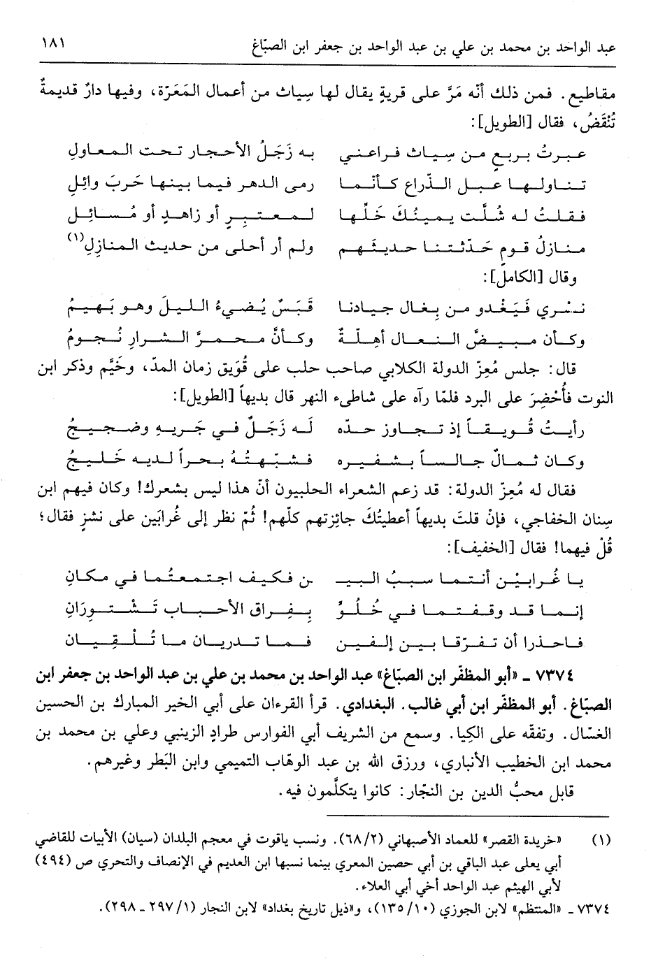 عبد الْوَاحِد بن مُحَمَّد بن عَليّ بن عبد الْوَاحِد بن جَعْفَر بن الصّباغ أَبُو المظفر ابْن أبي غَالب