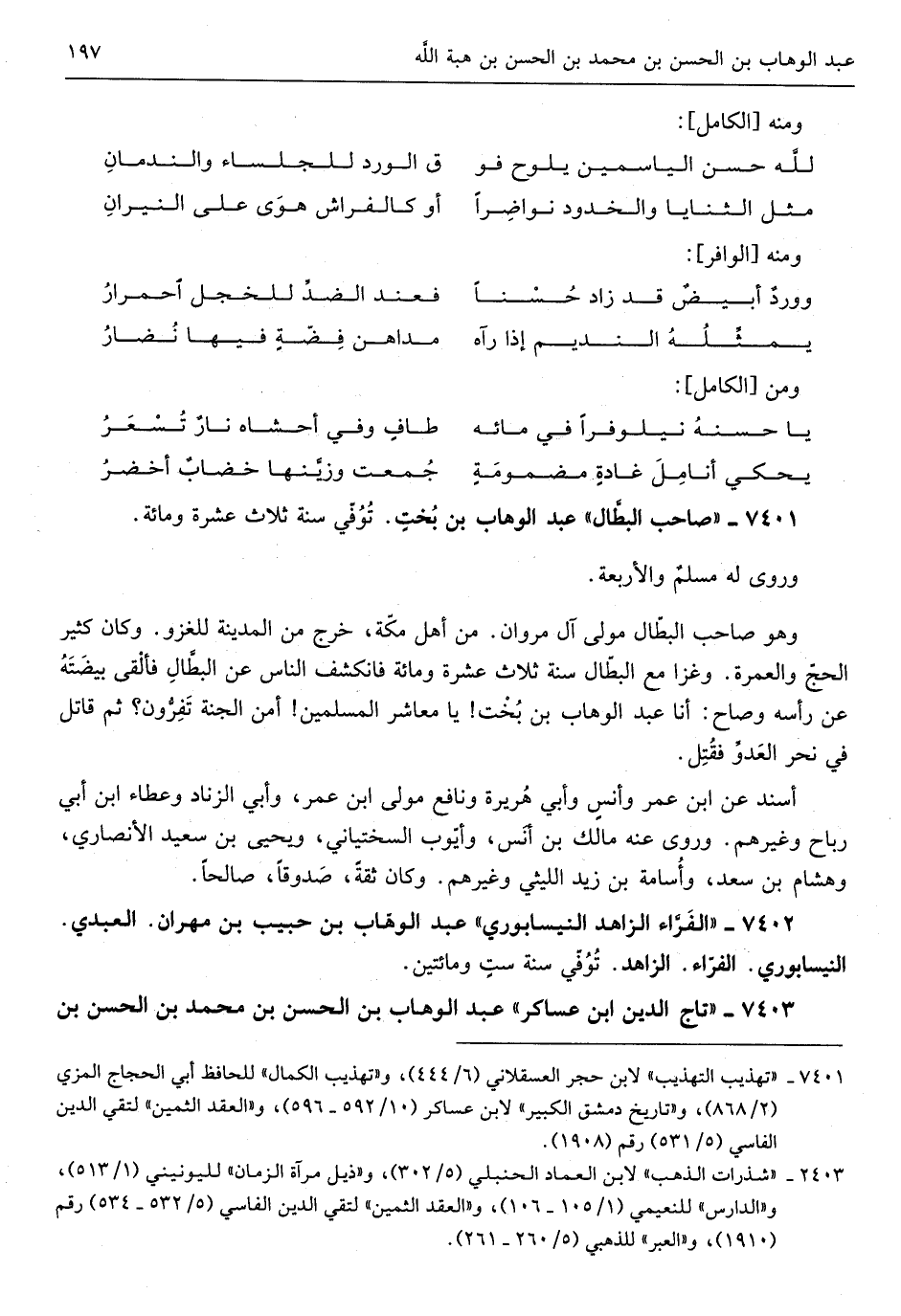 عبد الْوَهَّاب بن حبيب بن مهْرَان الْعَبْدي النَّيْسَابُورِي الْفراء الزَّاهِد توفّي سنة سِتّ ومايتين