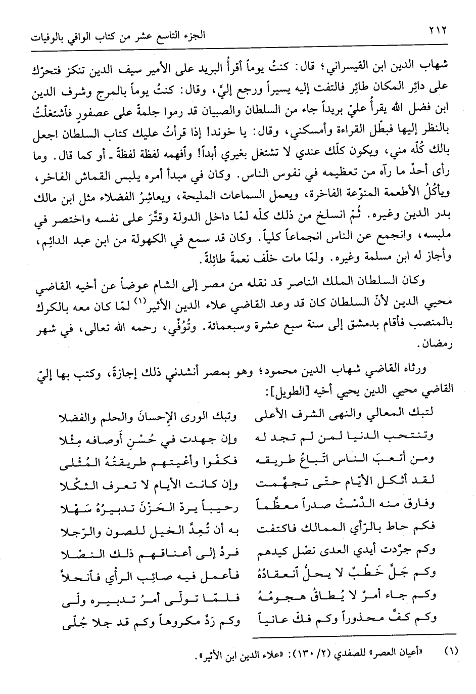 ورثاه القَاضِي شهَاب الدّين مَحْمُود وَهُوَ بِمصْر أَنْشدني ذَلِك إجَازَة وَكتب بهَا إِلَيّ القَاضِي محيي الدّين يحيي أَخِيه