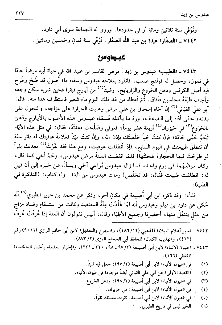 قلت وَقد ذكره ابْن أبي أصيبعة فِي مَكَان آخر وَذكر عَن مُحَمَّد بن جرير الطَّبَرِيّ أَنه حُكيَ عَن دَاوُد بن دَيْلَم وعبدوس أَنه لما غلظت على المعتضد وَكَانَت من استسقاء وَفَسَاد مزاج من علل يتنقل مِنْهَا أحضرنا وَجَمِيع الْأَطِبَّاء وَقَالَ أَلَيْسَ تقوون أَن الْعلَّة إِذا عرفت عرف