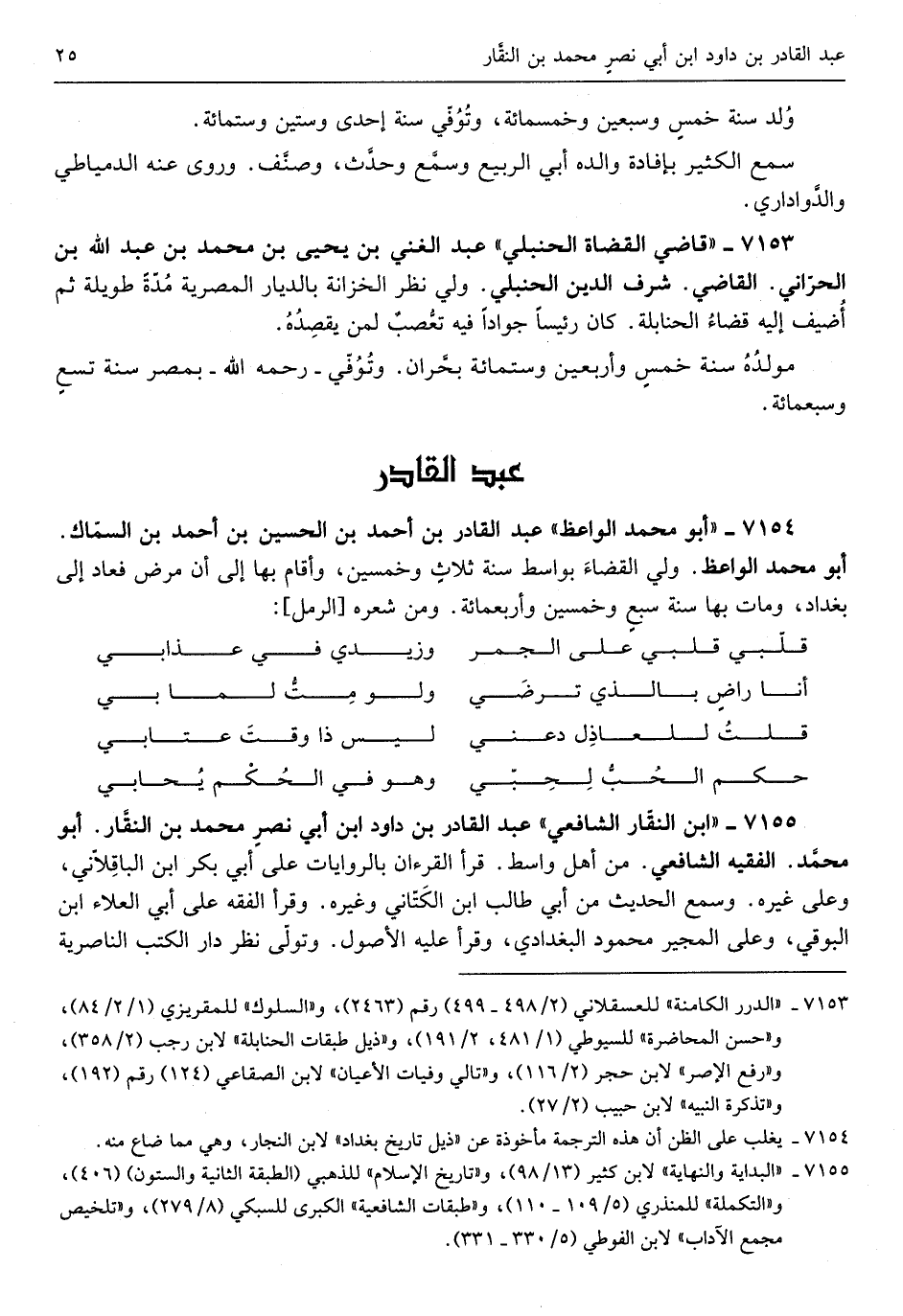 عبد الْقَادِر بن أَحْمد بن الْحُسَيْن بن أَحْمد بن السماك أَبُو مُحَمَّد الْوَاعِظ ولي الْقَضَاء بواسط سنة ثَلَاث وَخمسين وَأقَام بهَا إِلَى أَن مرض فَعَاد إِلَى بَغْدَاد وَمَات بهَا سنة سبع وَخمسين وَأَرْبع ماية وَمن شعره