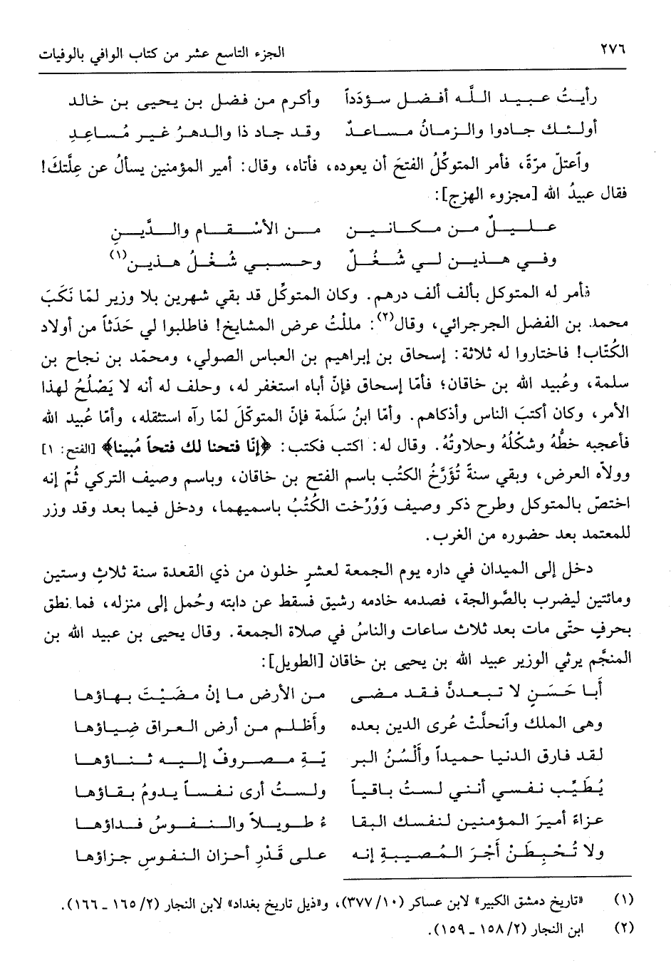 (رَأَيْت عبيد الله أفضل سؤدداً ... وَأكْرم من فضل بن يحيى بن خَالِد)