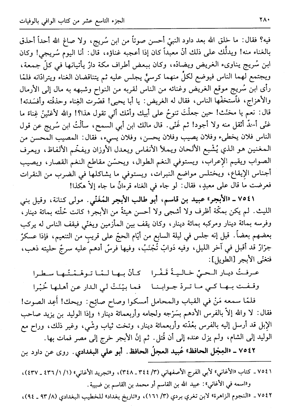 فِيهِ فَقَالَ مَا خلق الله بعد دَاوُد النَّبِي أحسن صَوتا من ابْن سُرَيج وَلَا صاغ الله أحدا أحذق بِالْغنَاءِ مِنْهُ)
