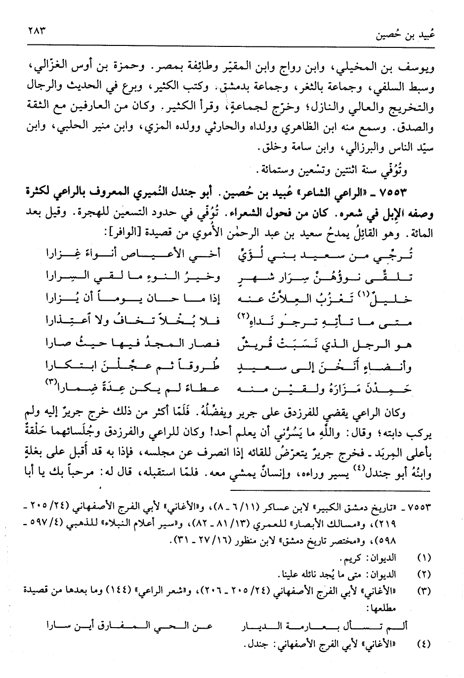 عبيد بن حُصَيْن أَبُو جندل النميري الْمَعْرُوف بالراعي لِكَثْرَة وَصفه الْإِبِل فِي شعره وَكَانَ)